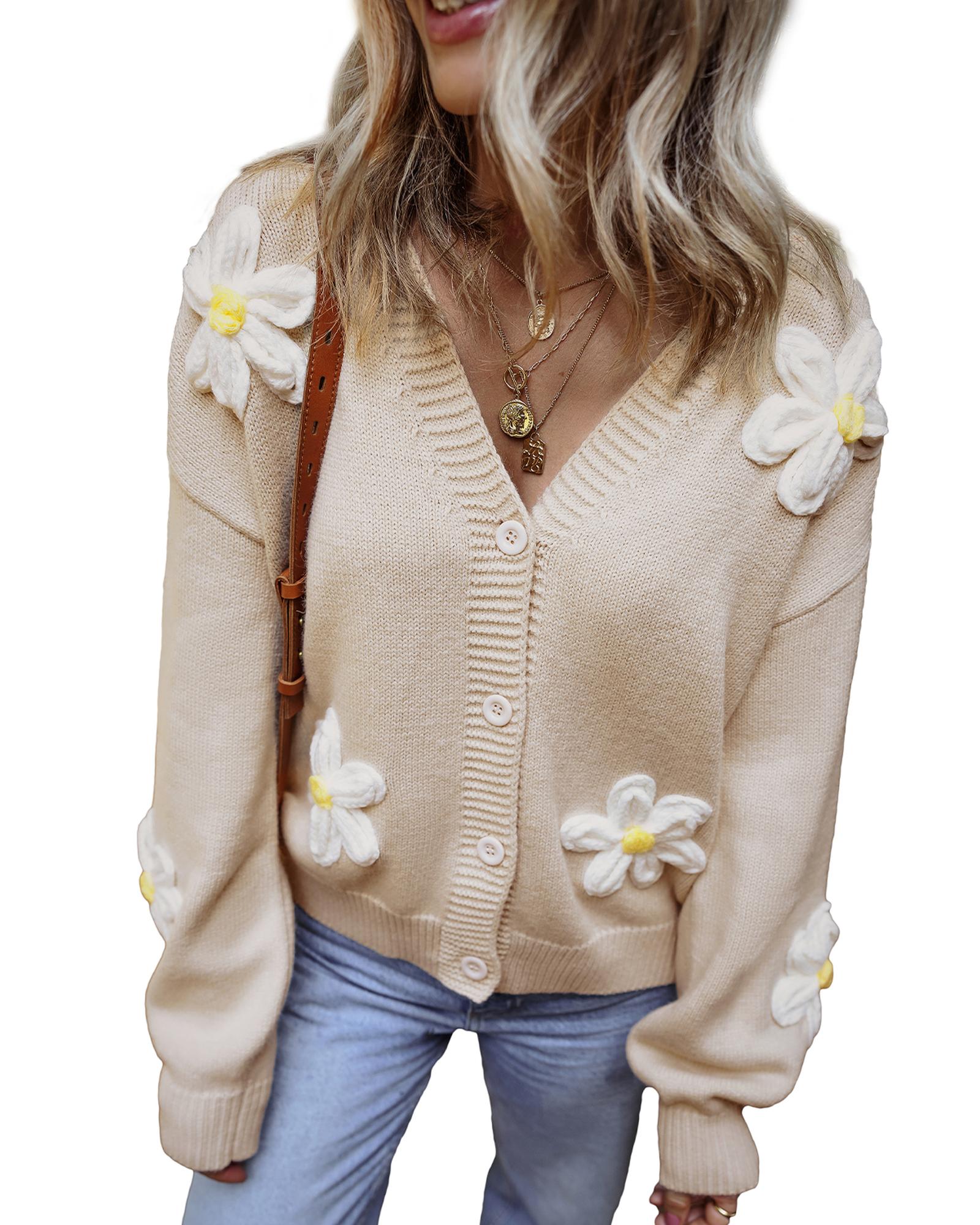 Parchment Elegant Flower Decor Button Front Cardigan – XL