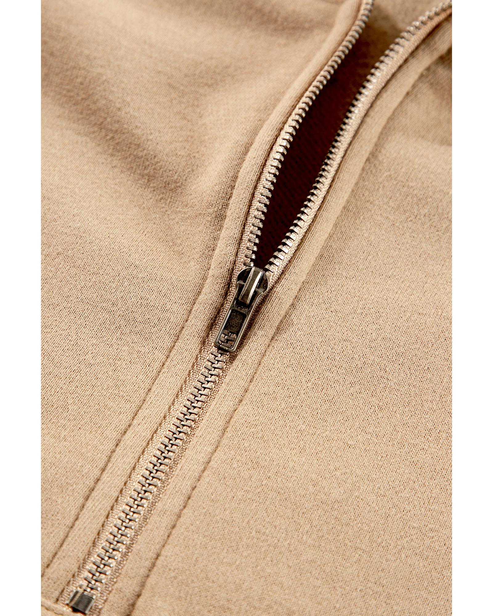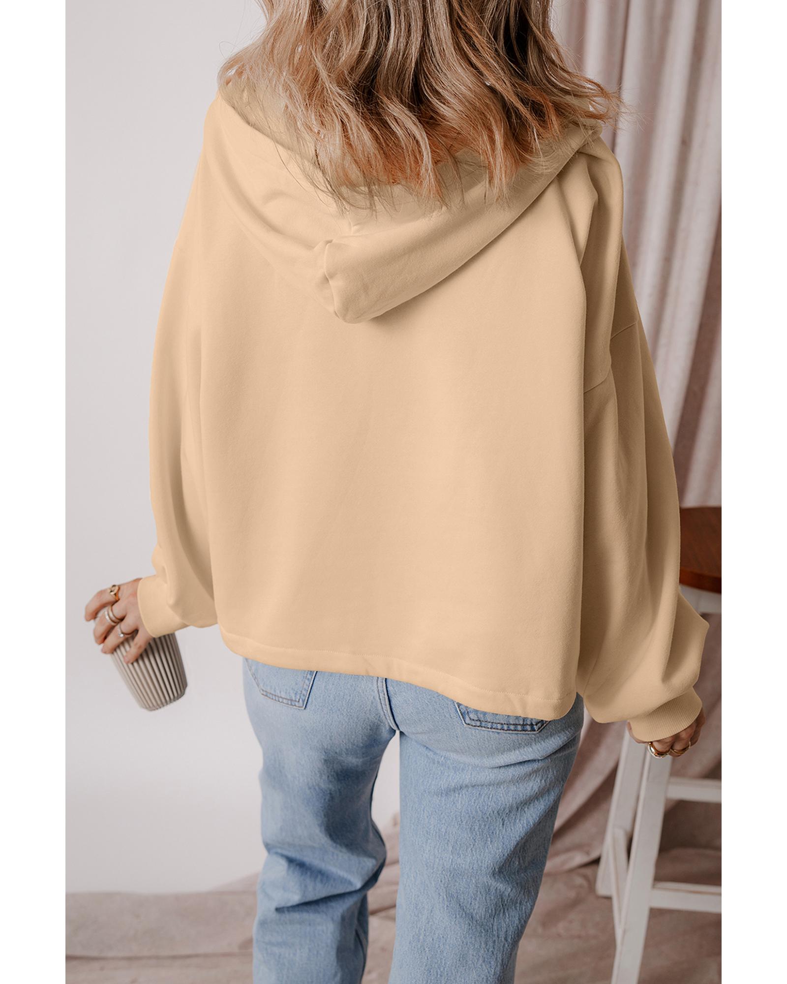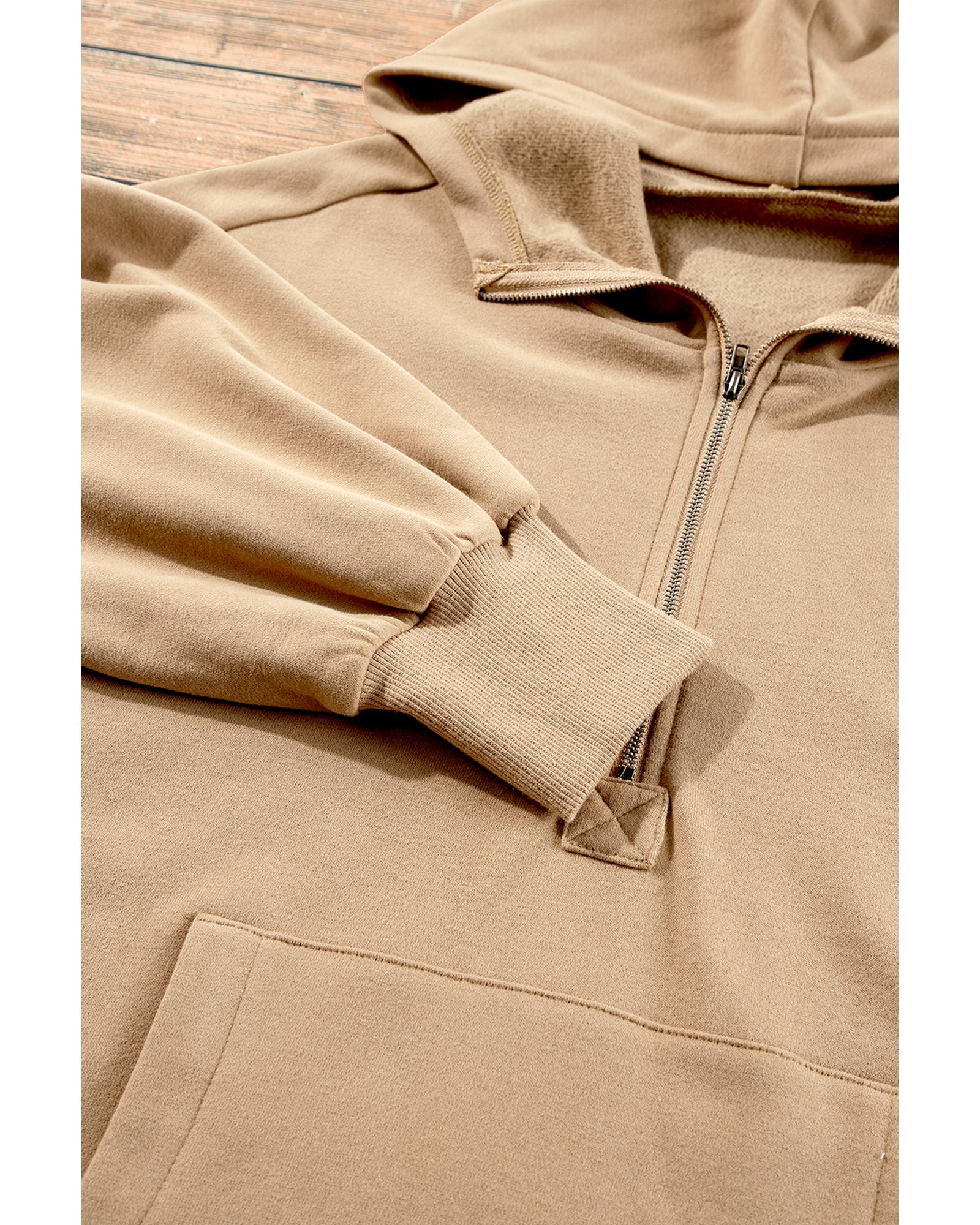 Parchment Fleece Lined Half Zipper Kangaroo Pockets Loose Hoodie – L