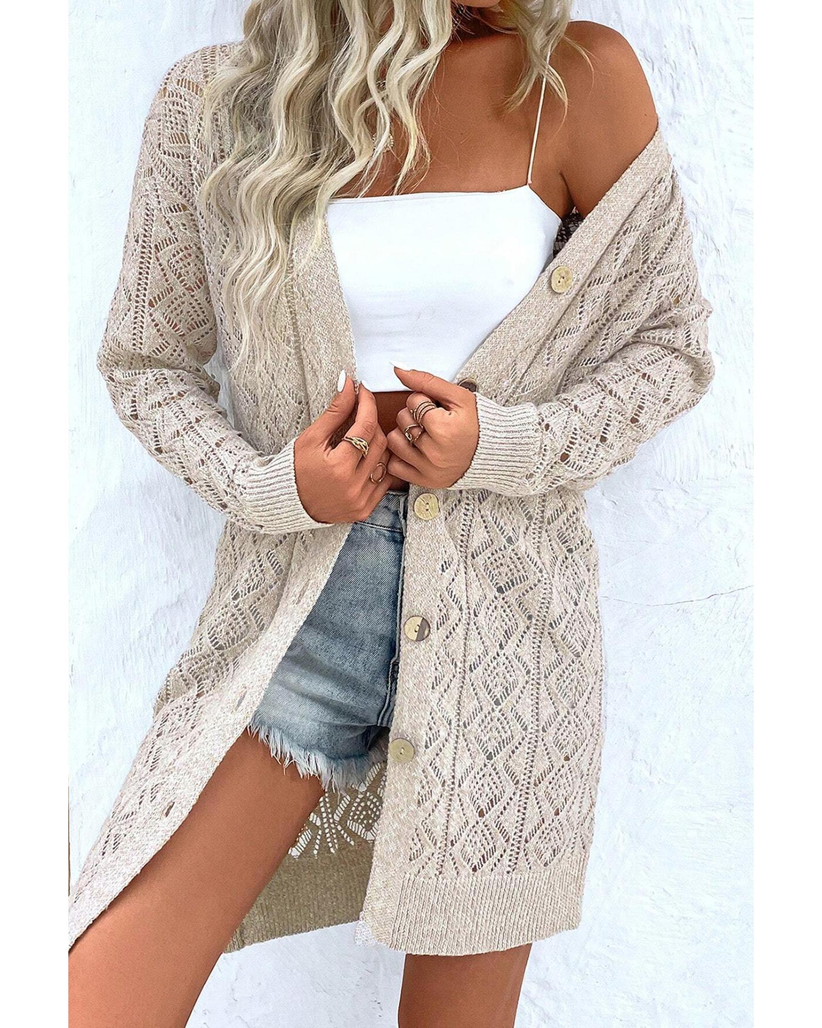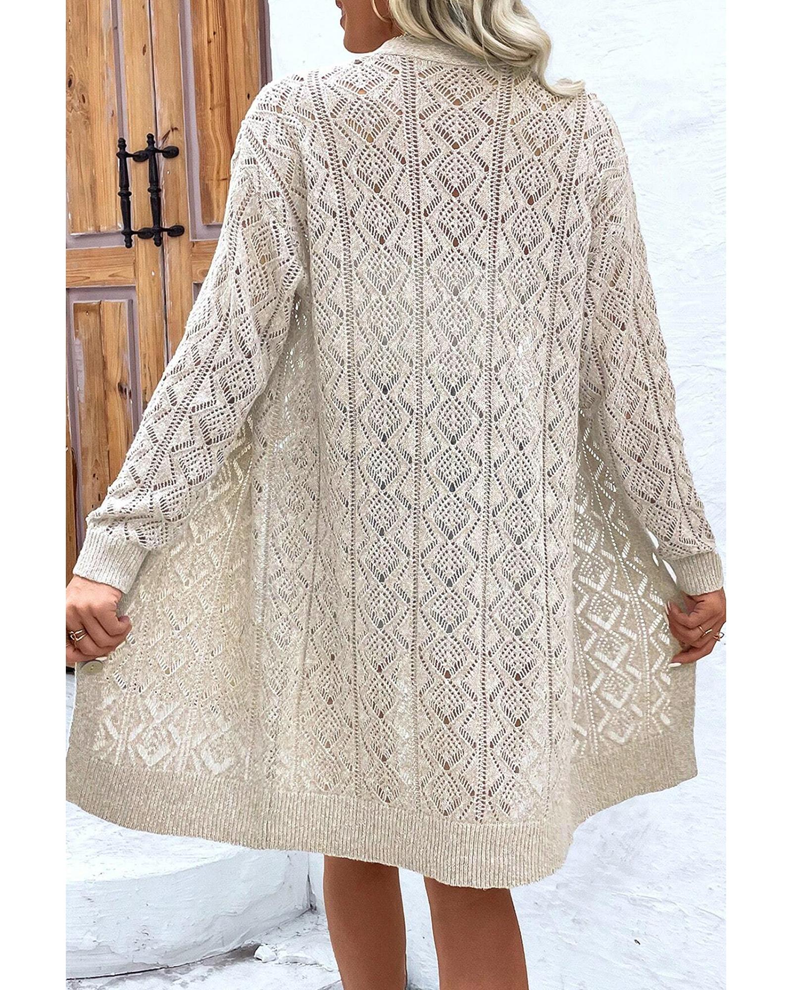 Parchment Hollow Out Buttons Front Long Cardigan – L
