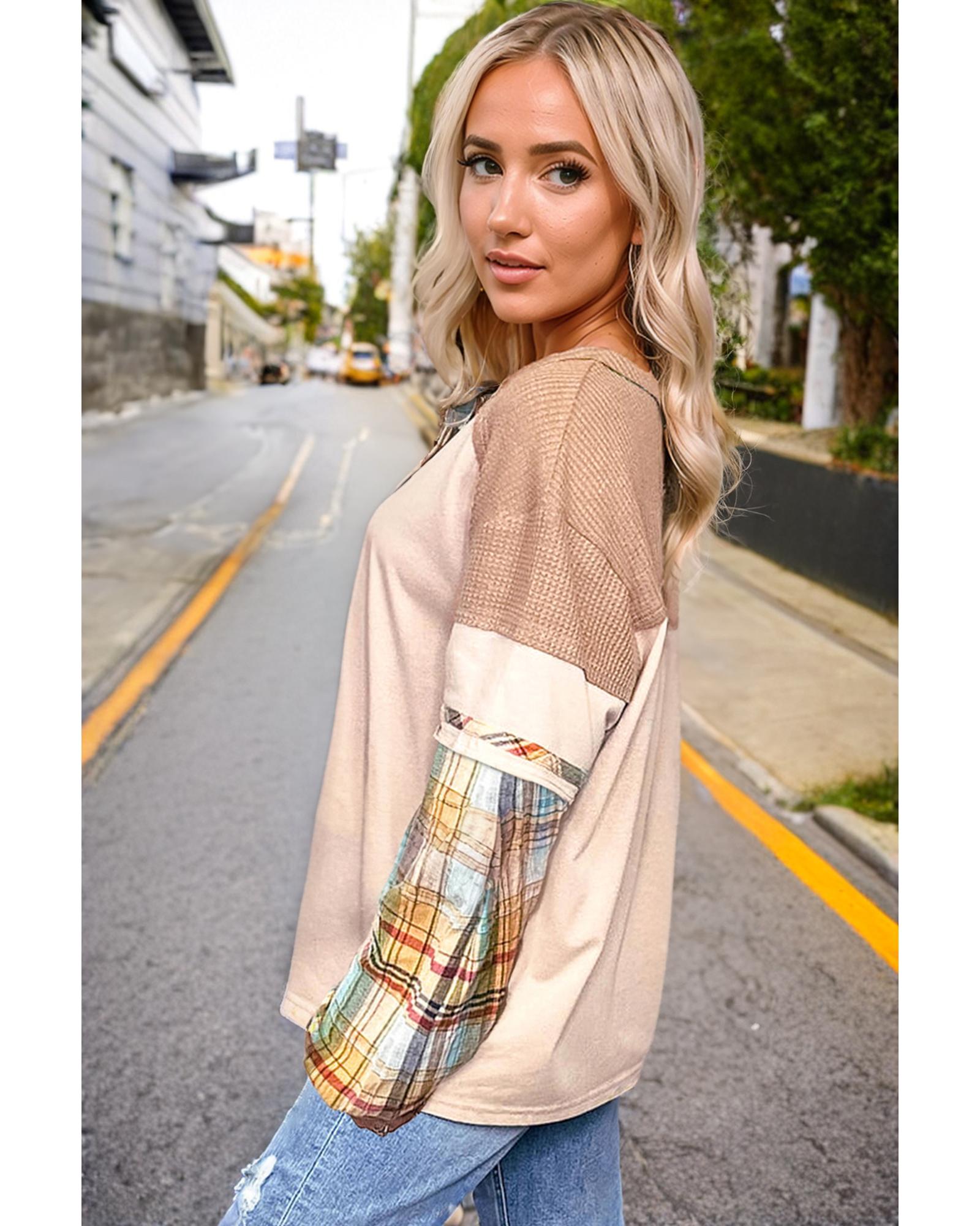 Parchment Plus Size Plaid Patchwork Layered Henley Top – 3X