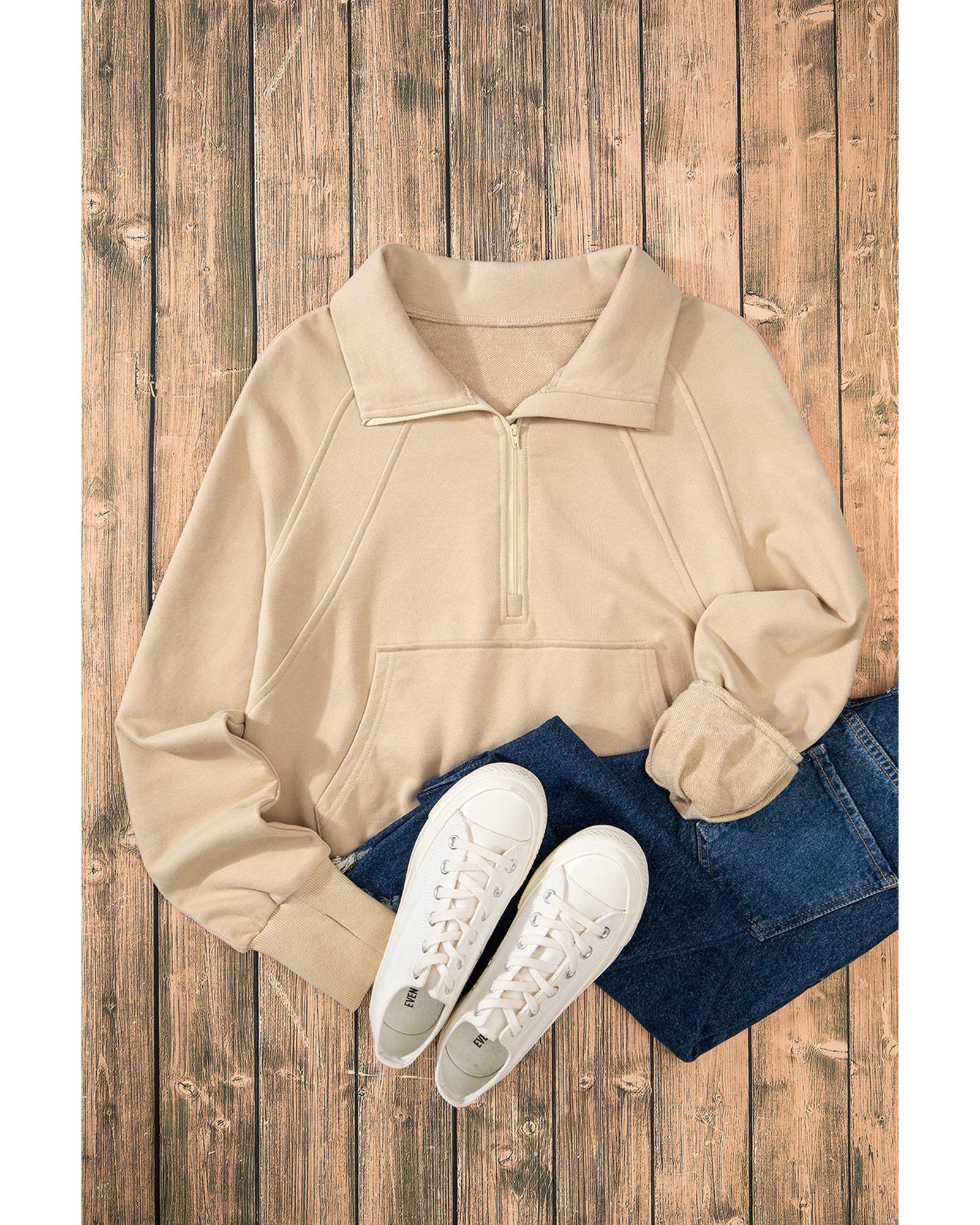 Parchment Quarter Zip Stand Neck Kangaroo Pocket Sweatshirt – XL