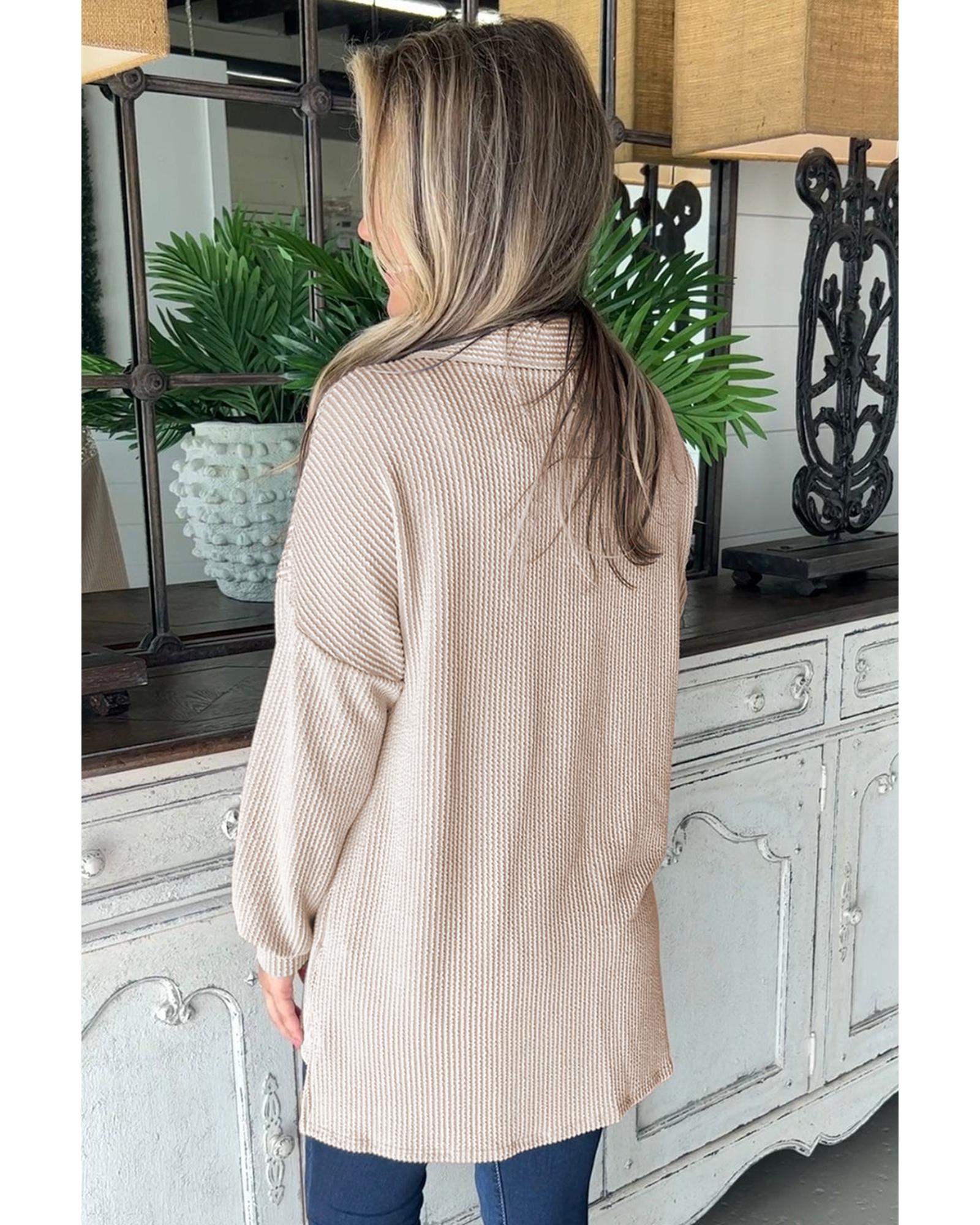 Oatmeal Textured Flap Pockets Buttoned Plus Size Shacket - 2X