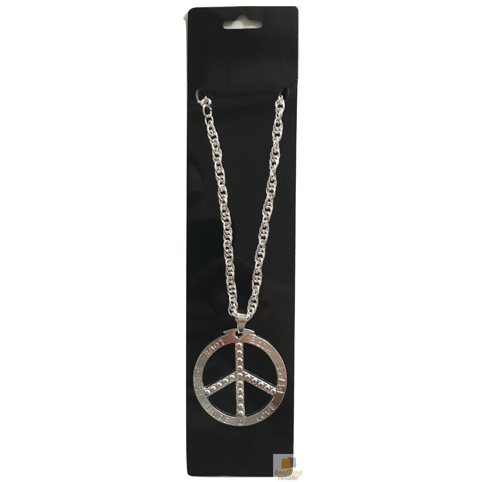 PEACE Metal Necklace Chain Hippie Costume Party Pendant Chain Jewellery 70s 60s