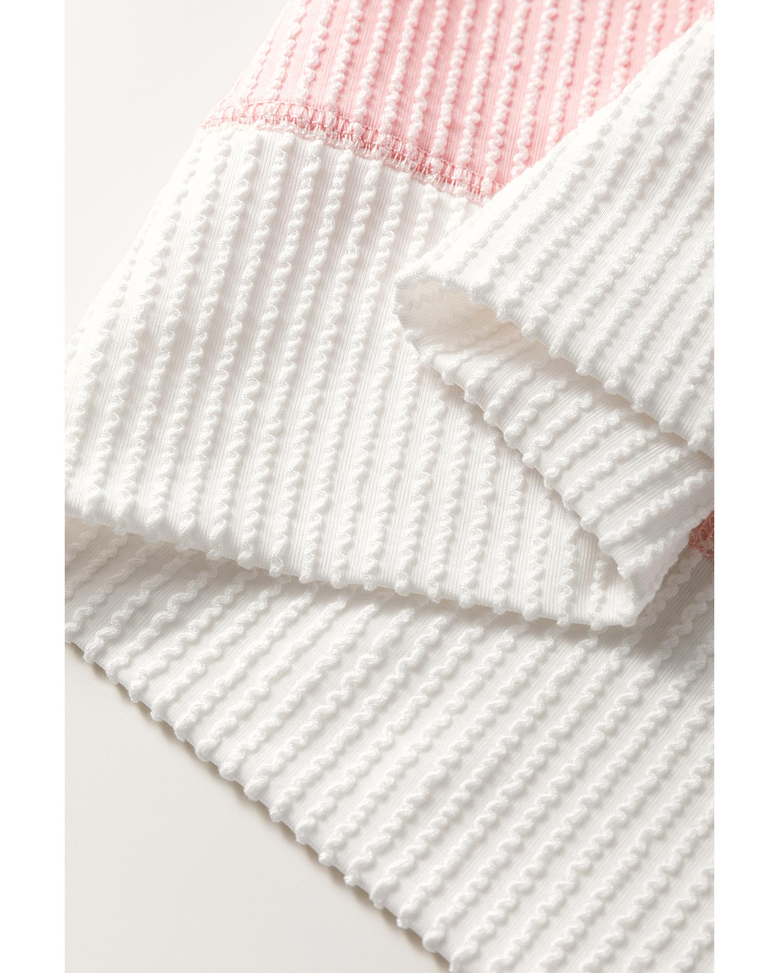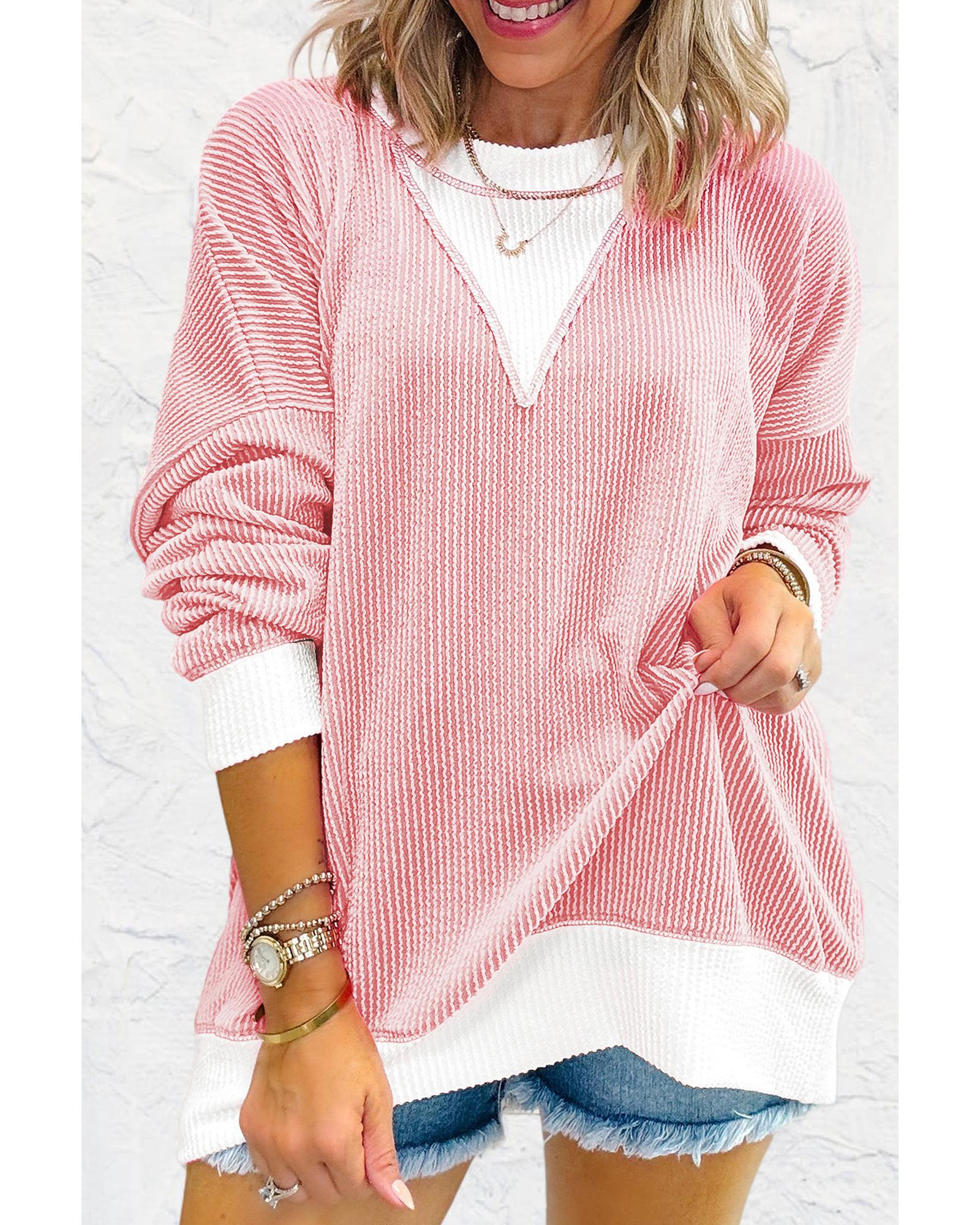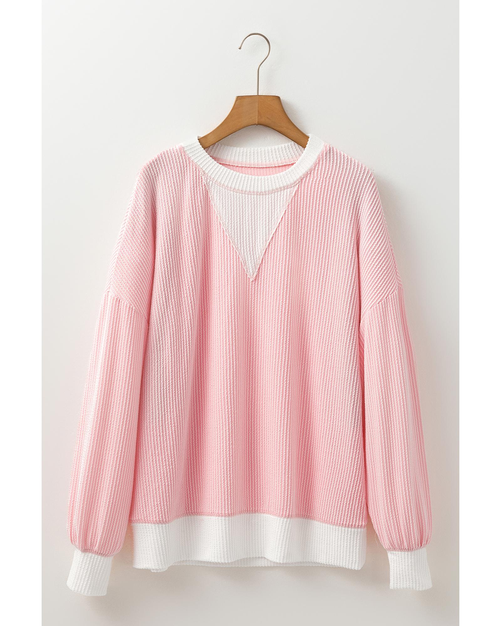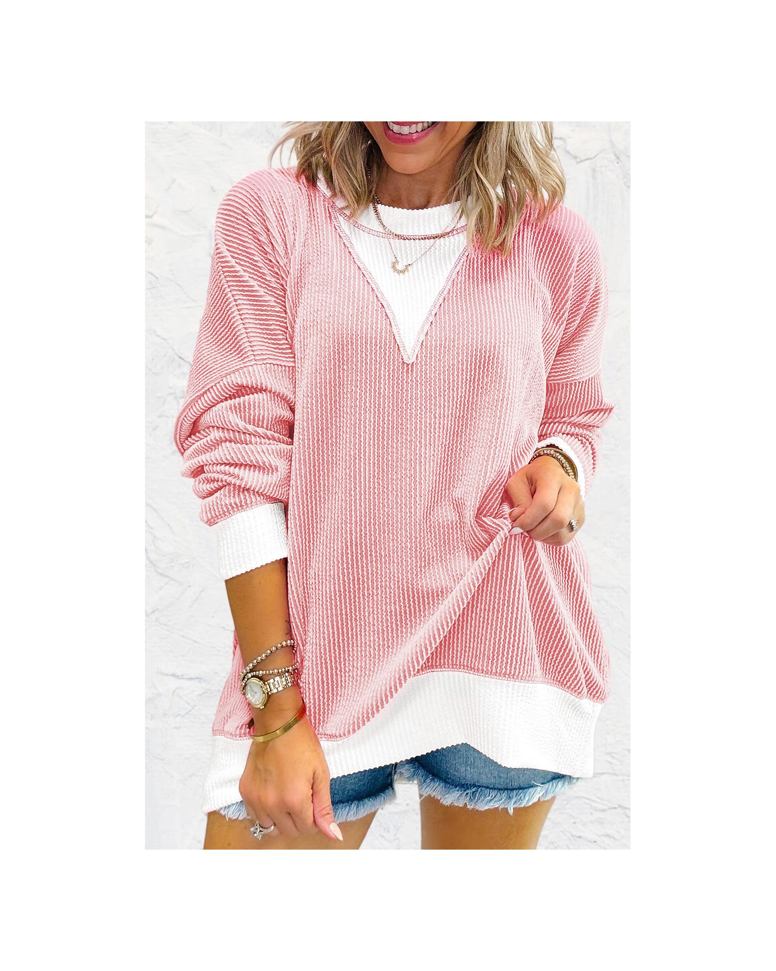 Peach Blossom Corded Colorblock Drop Shoulder Loose Top – M