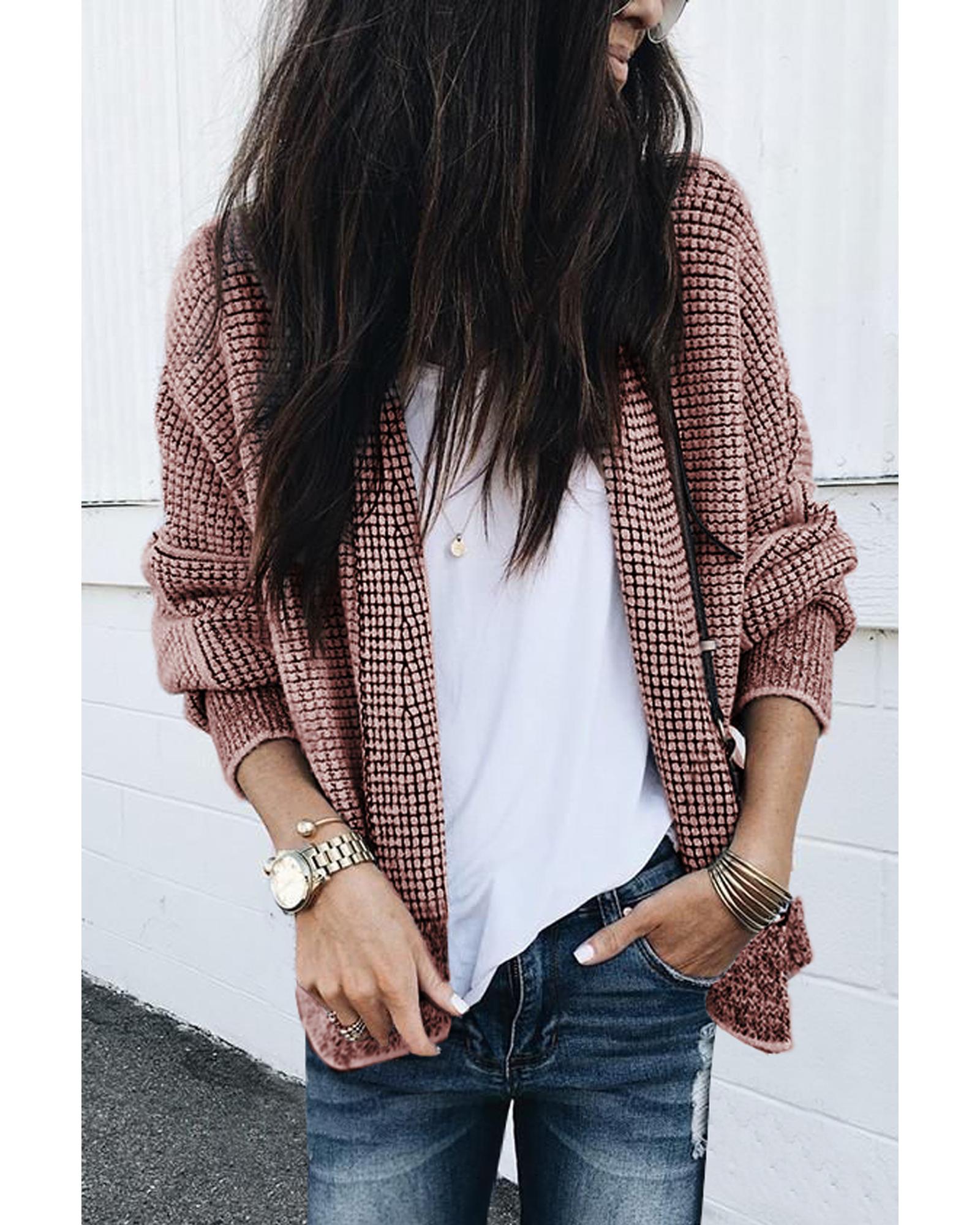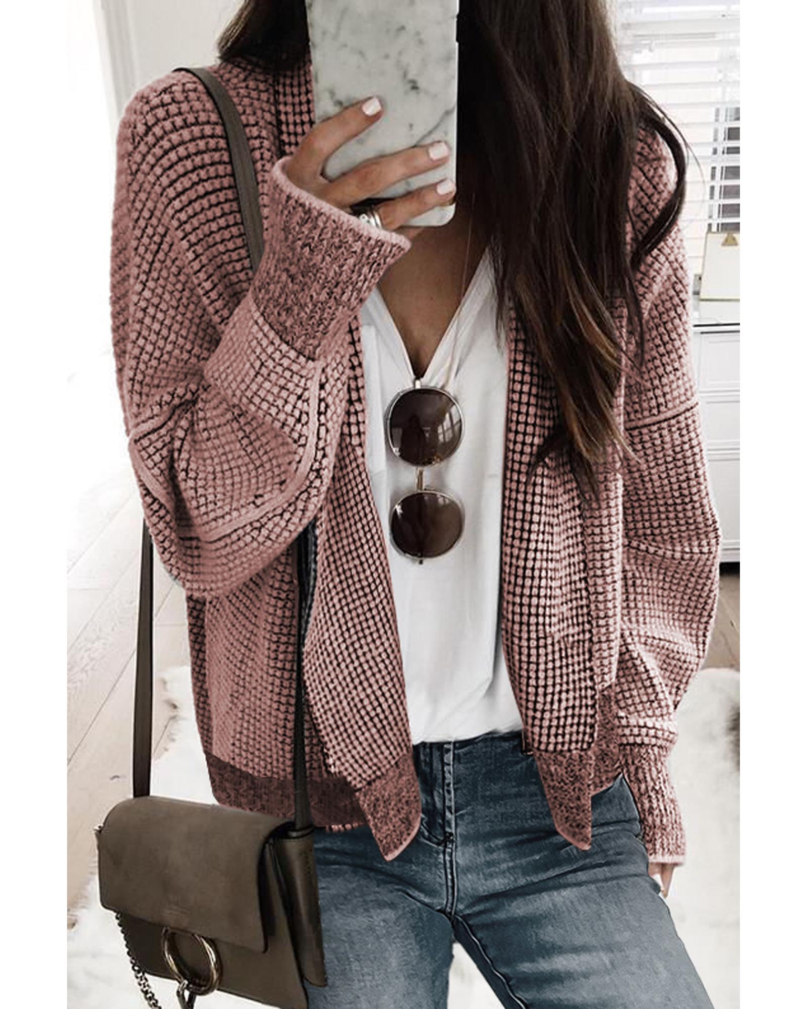 Peach Blossom Plaid Contrast Trim Open Front Cardigan – XL