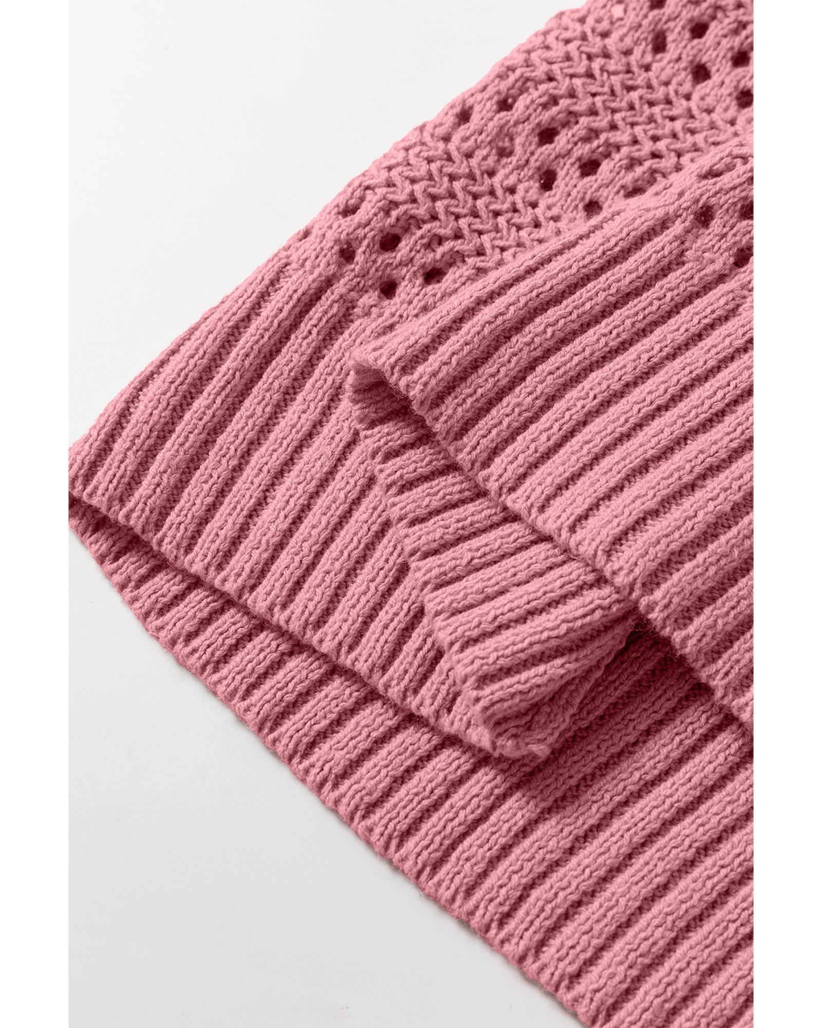 Pink Crochet Knit Drop Shoulder Sweater - XL