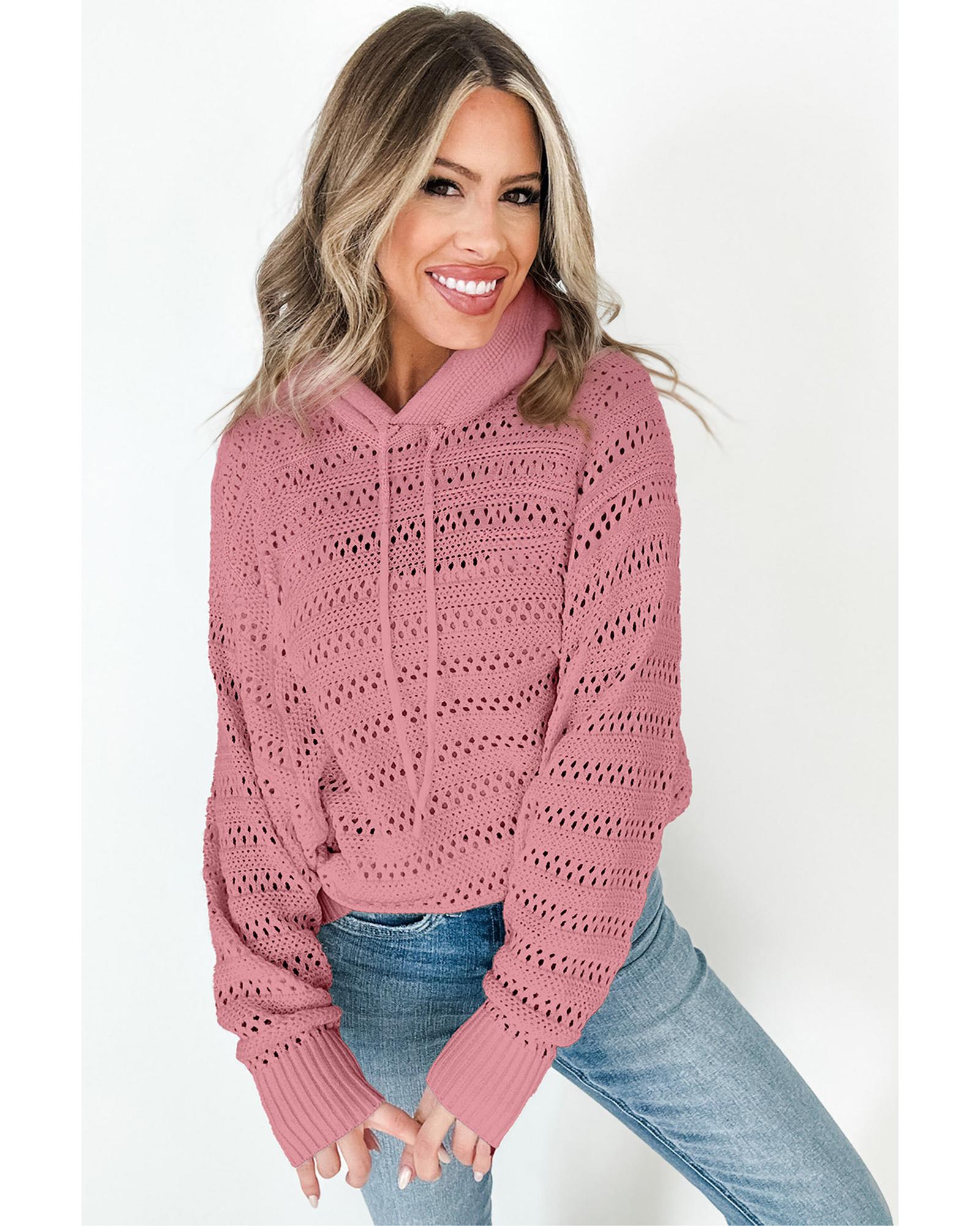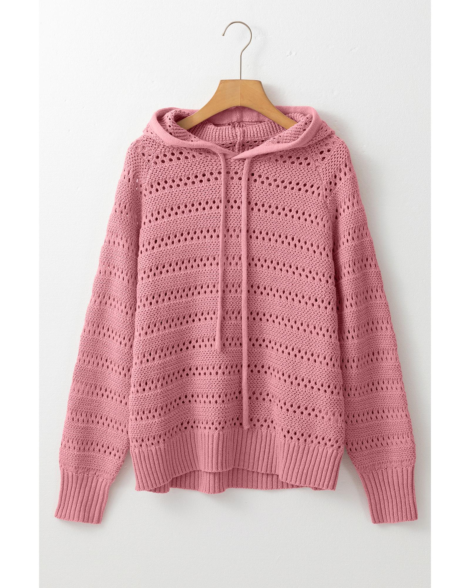 Peach Blossom Pointelle Knit Raglan Sleeve Hooded Sweater – S