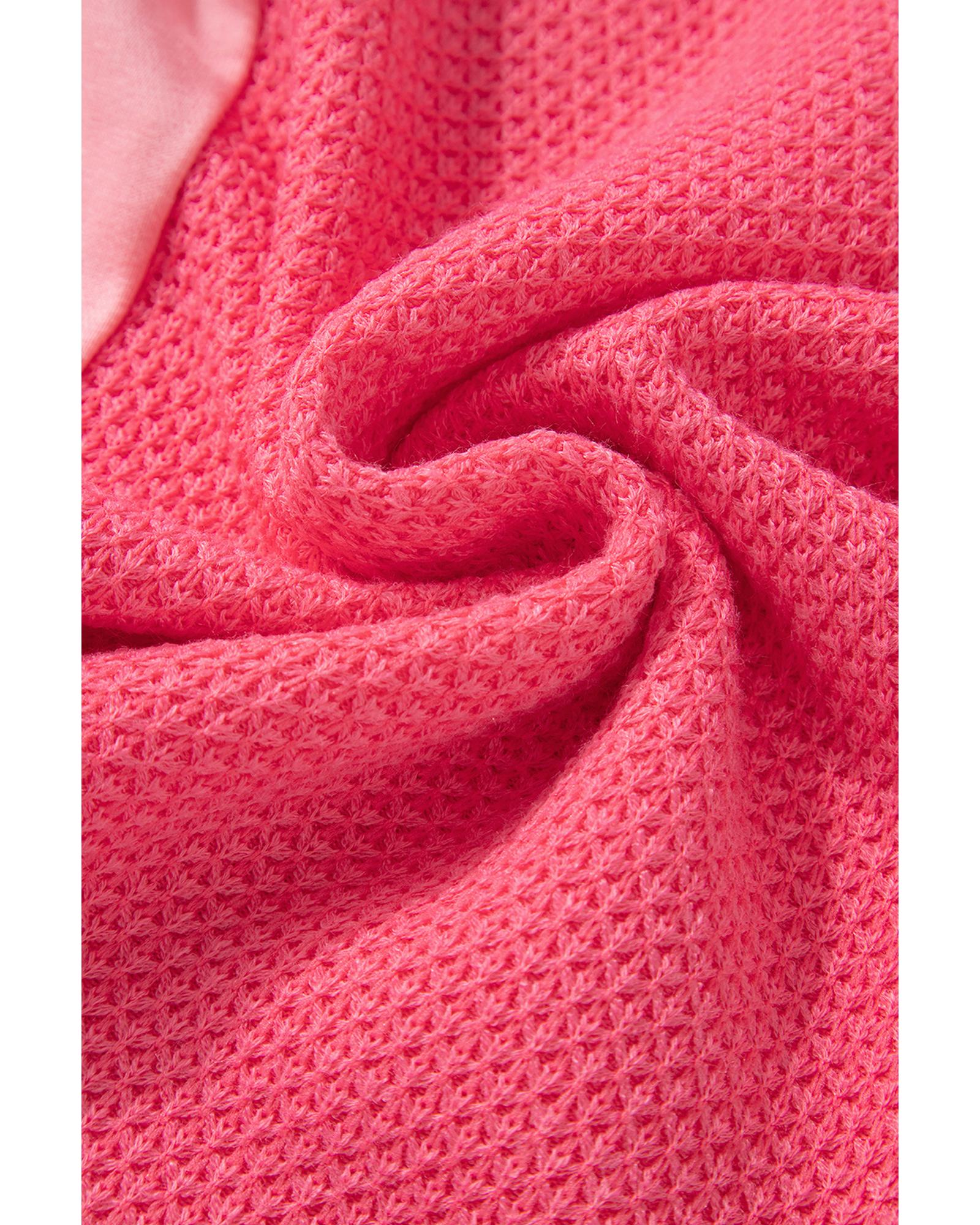 Peach Blossom Two Tone Contrast Waffle Knit Buttoned Loose Shacket – L