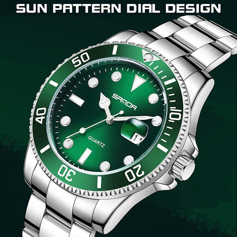 • Sunburst dial design with brushed metal effect for a shining appearance under light