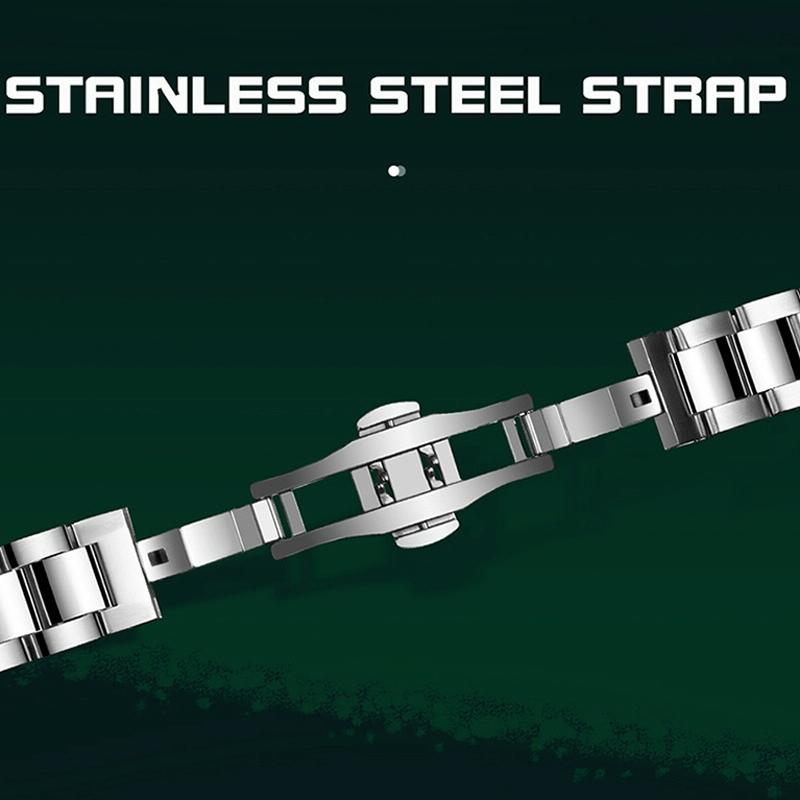 • Steel bracelet with butterfly double buckle for easy wearing and comfortable fit