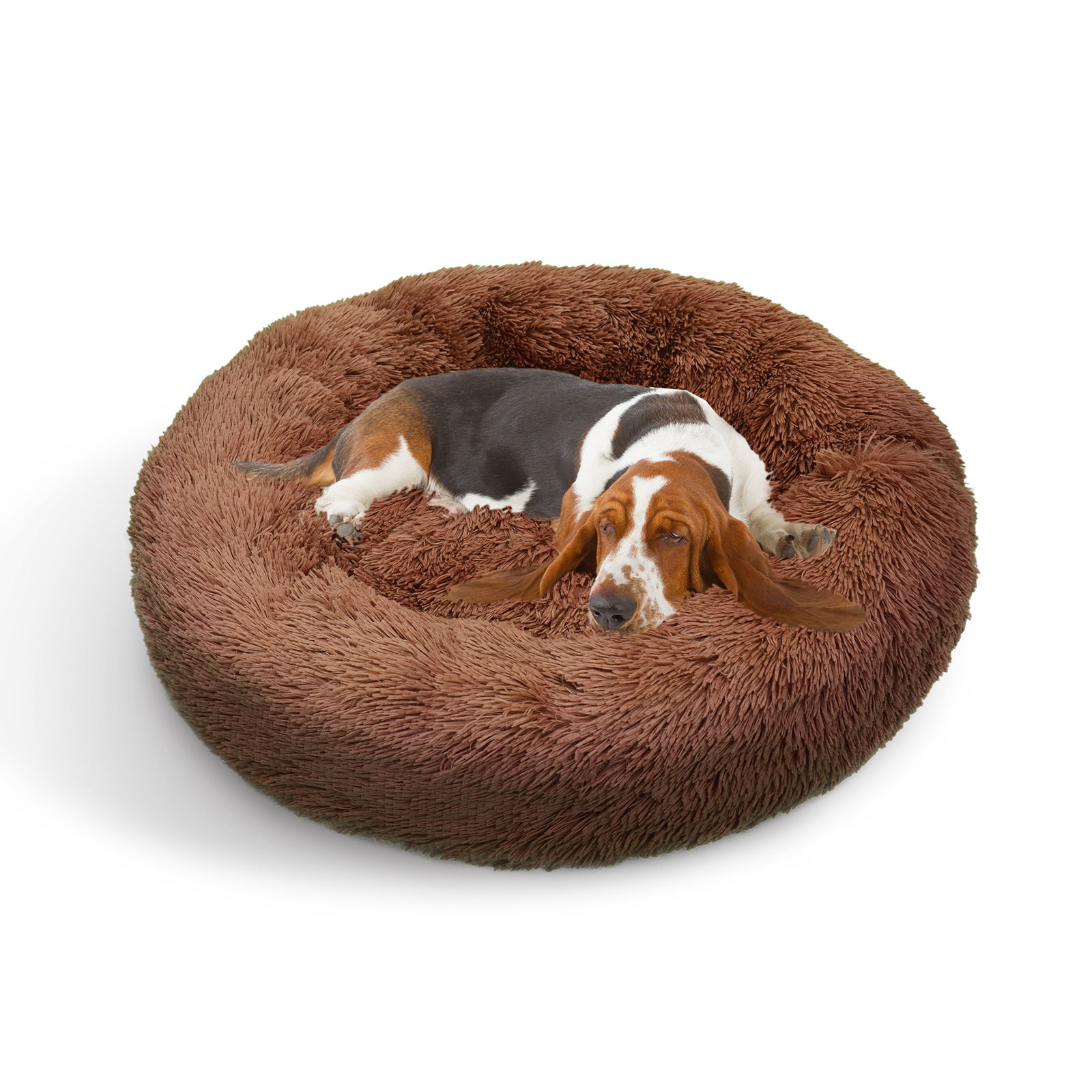 Pet Dog Bedding Warm Plush Round Comfortable Nest Sleeping kennel Coffee M 70cm