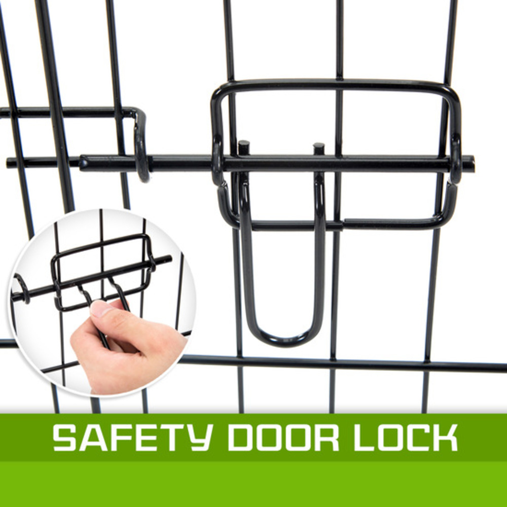 It features as 8 panels for multi-configuration which allows you to turn your playpen into different shapes. Made of durable steel frames construction with black powder coat finish provides Long Lasting Protection and weather resistance. The access door with bolt latches you can be sure that your pet doesn’t have the opportunity to run away and the round edges ensure pet safety.