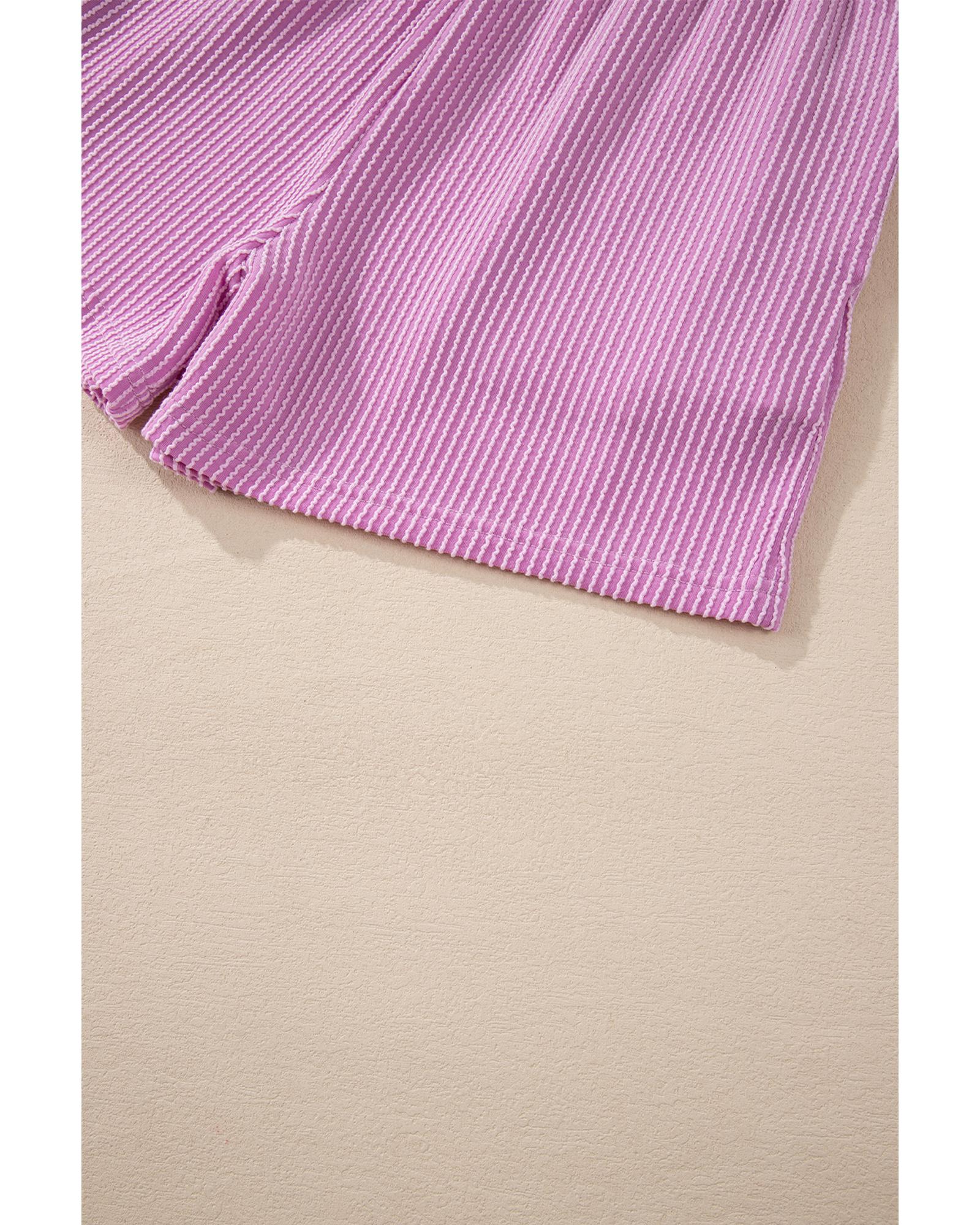 Phalaenopsis Corded Knit Long Sleeve Top and High Waist Shorts Set - S