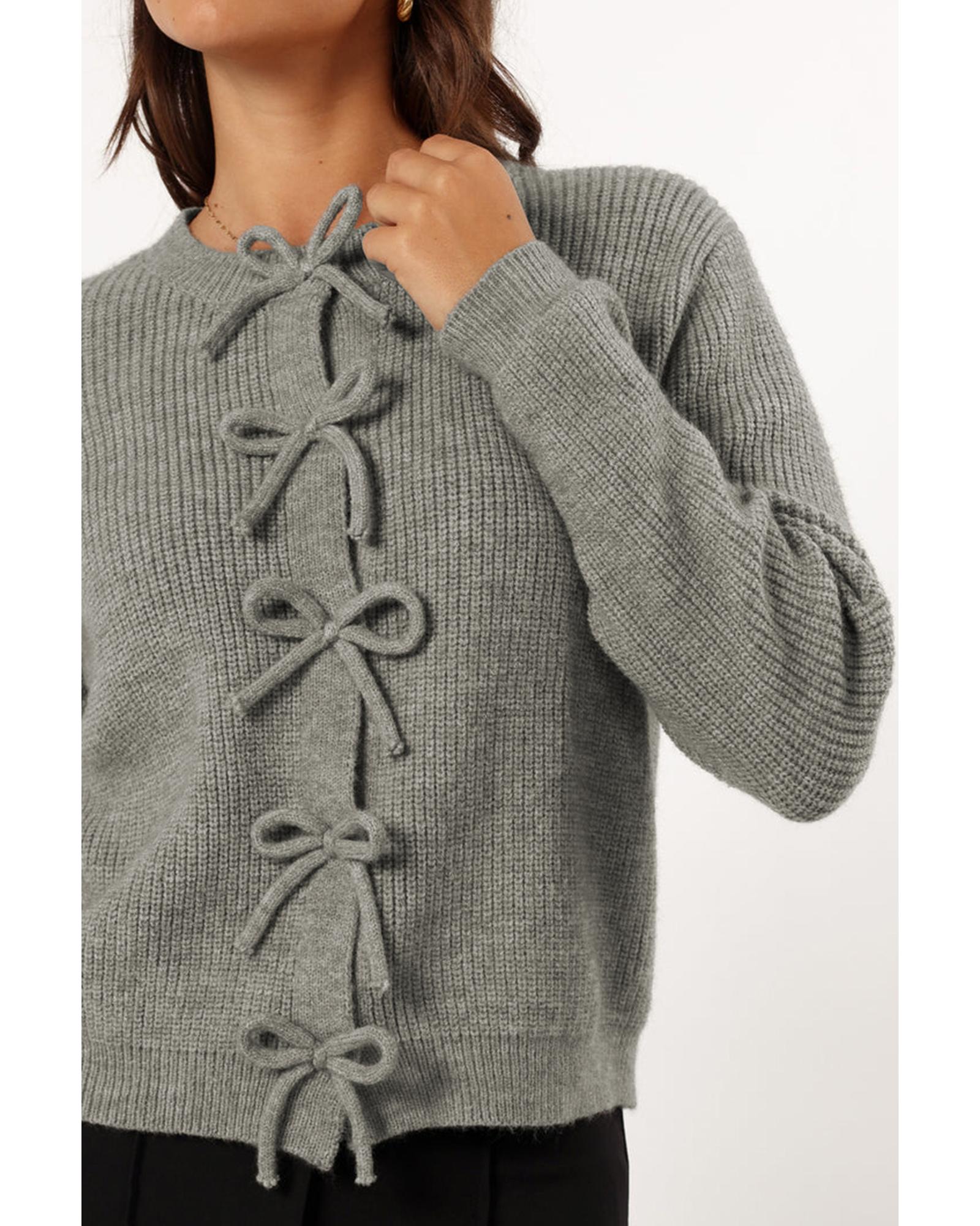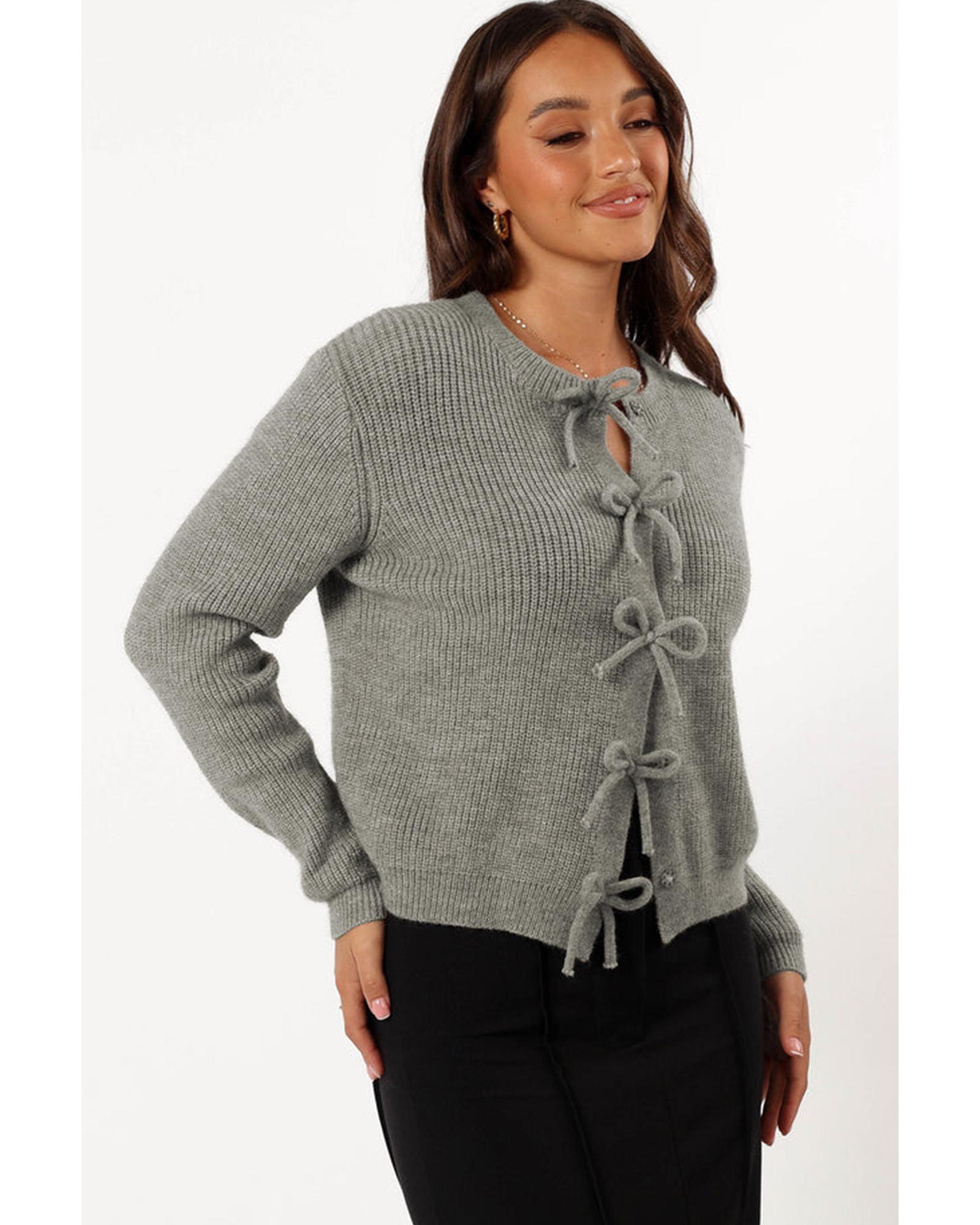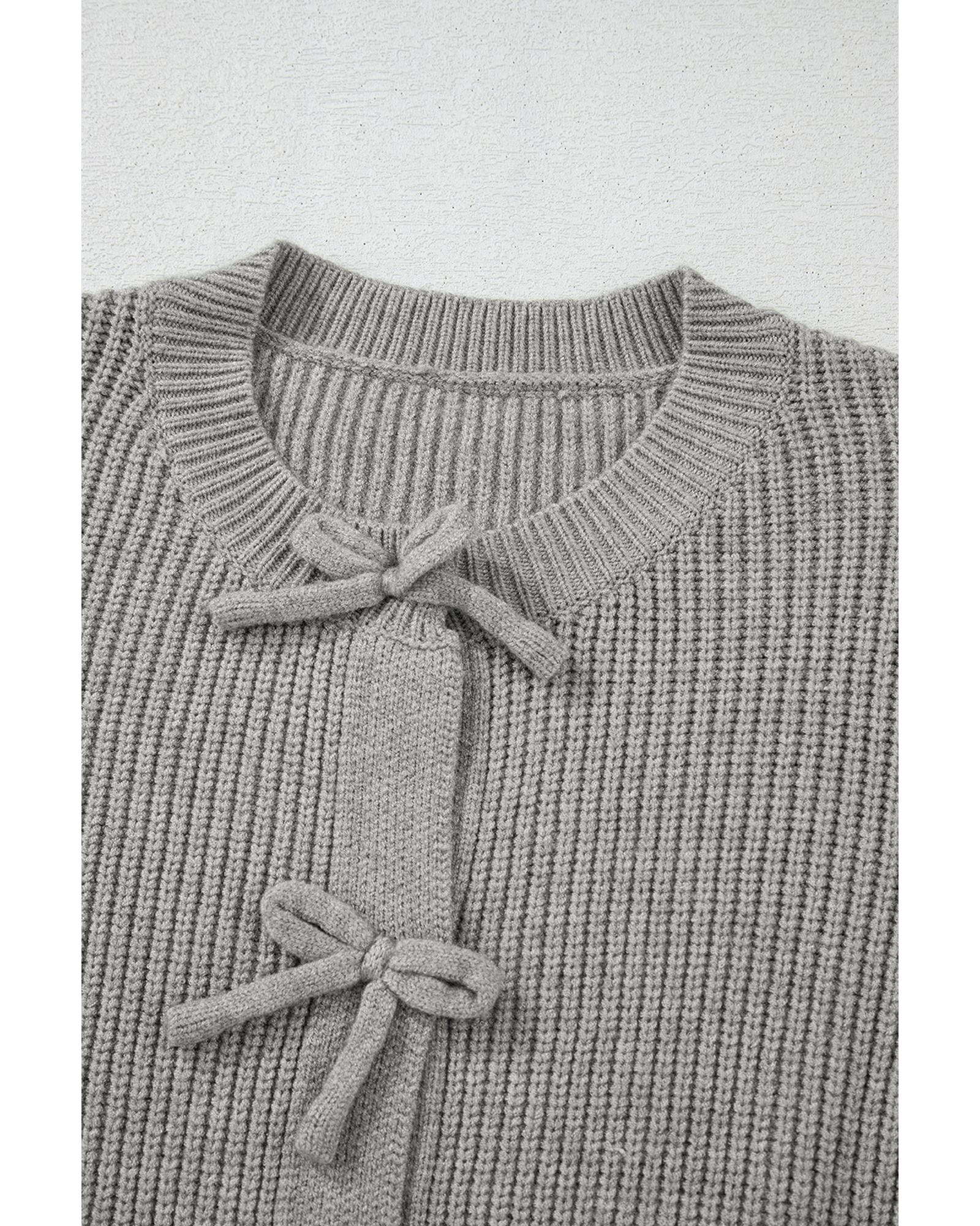 Philippine Gray Ribbed Knit Bow Front Buttoned Cardigan – M