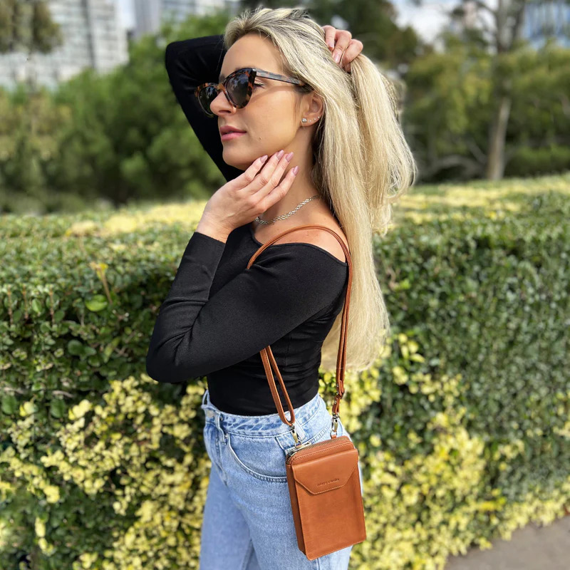 Pierre Cardin Ladies Leather Cross Body Bag/Wallet Bag/Clutch Wallet – Cognac