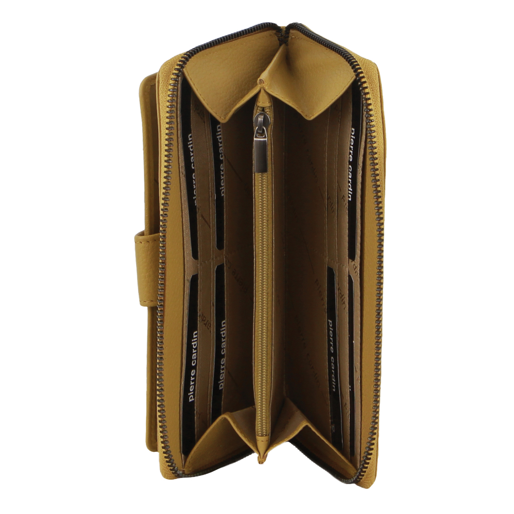 Step up your style game with the Pierre Cardin Women’s Leather Zip Around Wallet in Zinc Yellow. This wallet is more than just a practical accessory – it’s a statement of elegance and security. Enhance your everyday essentials with this vibrant and stylish piece, and carry your belongings with confidence and flair.