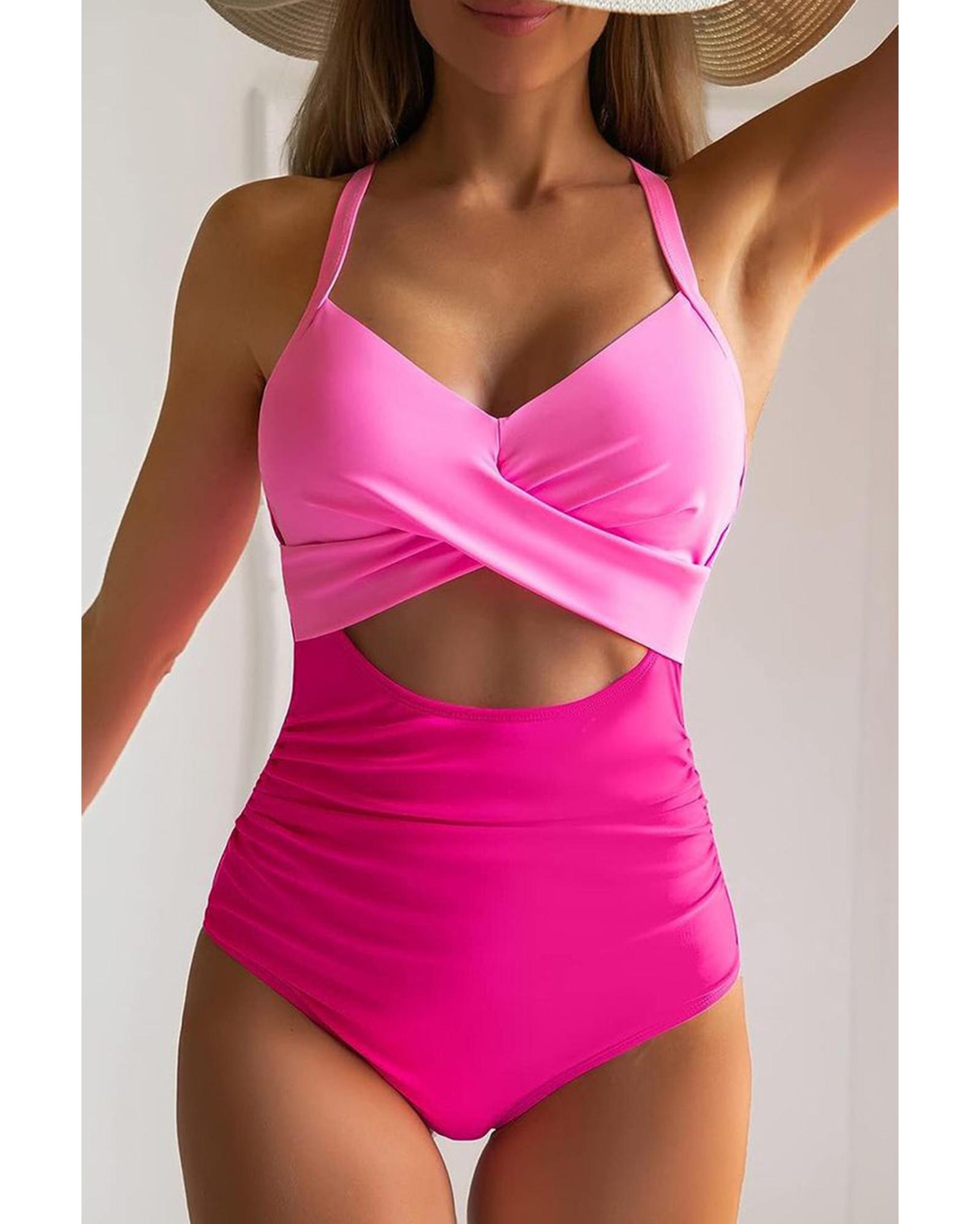 • tone Pink Crossed Cutout Backless Monokini