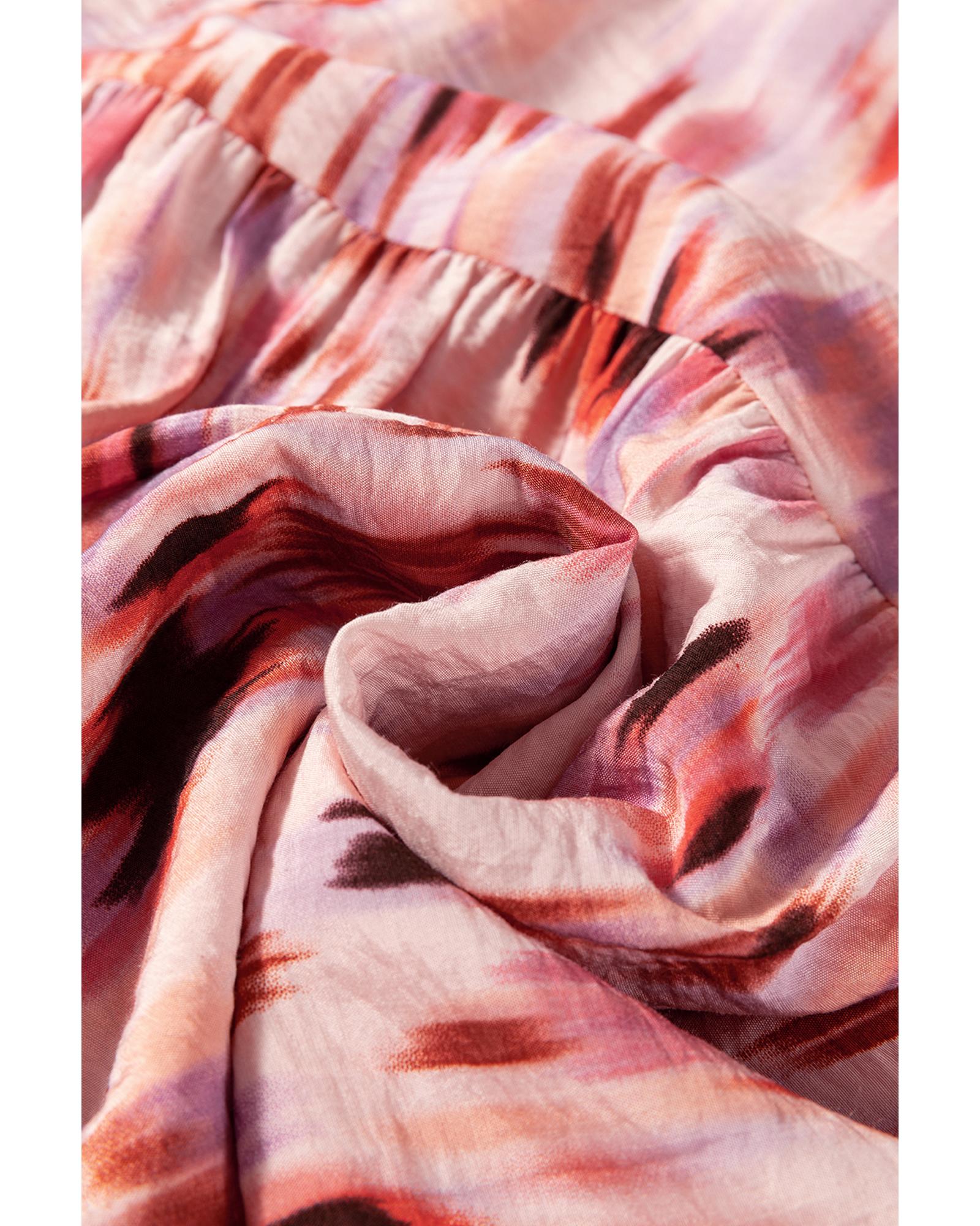 Pink Abstract Watercolor Tie Dye Tiered Maxi Skirt – XL
