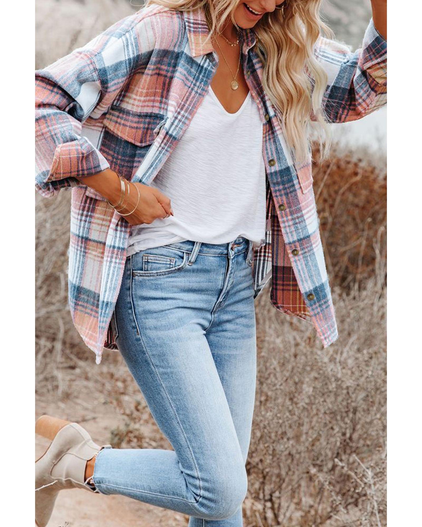 - Versatile and stylish Plaid Flap Pockets Shacket