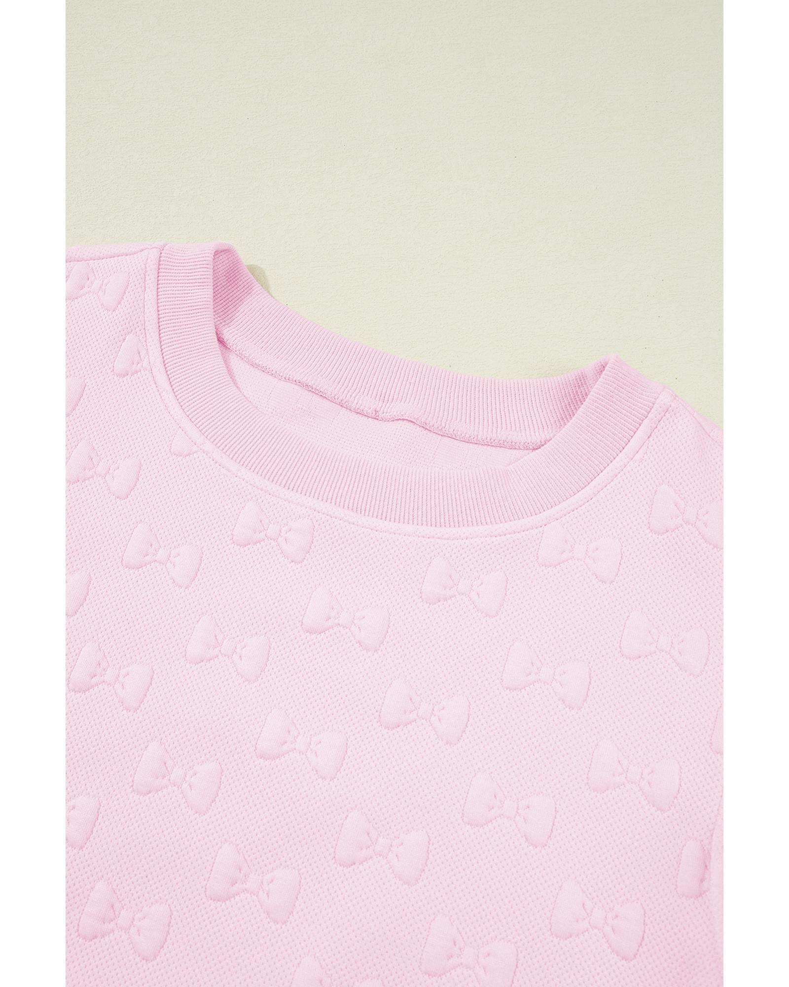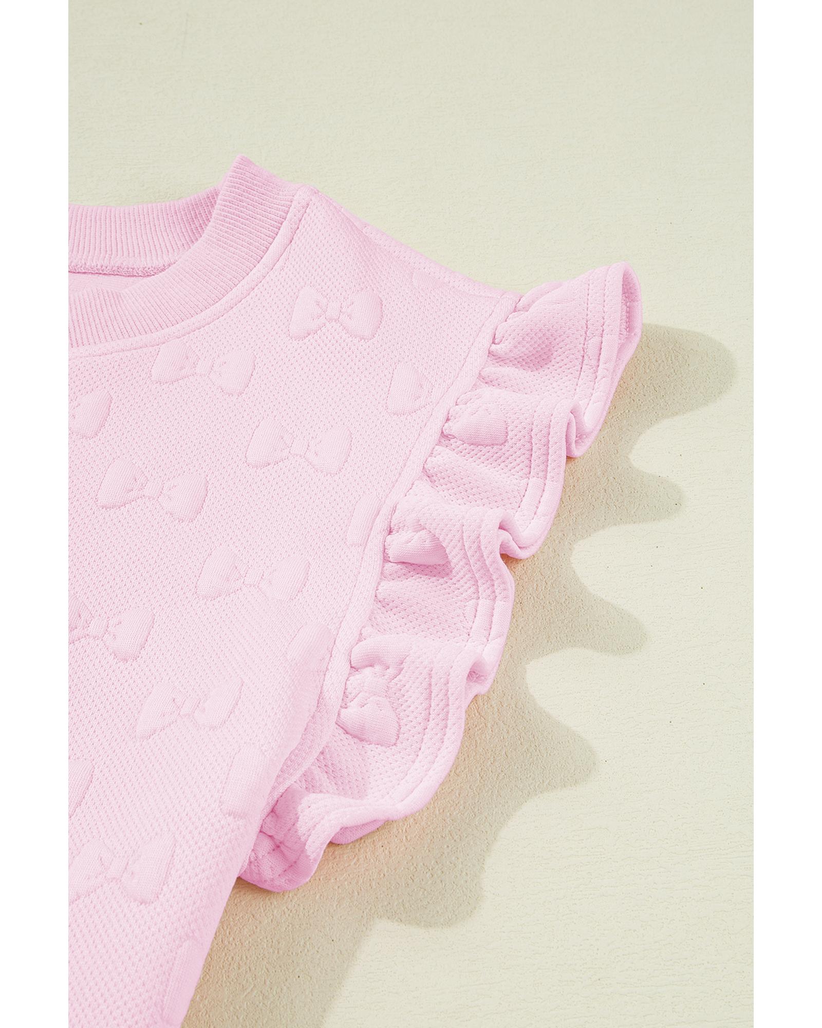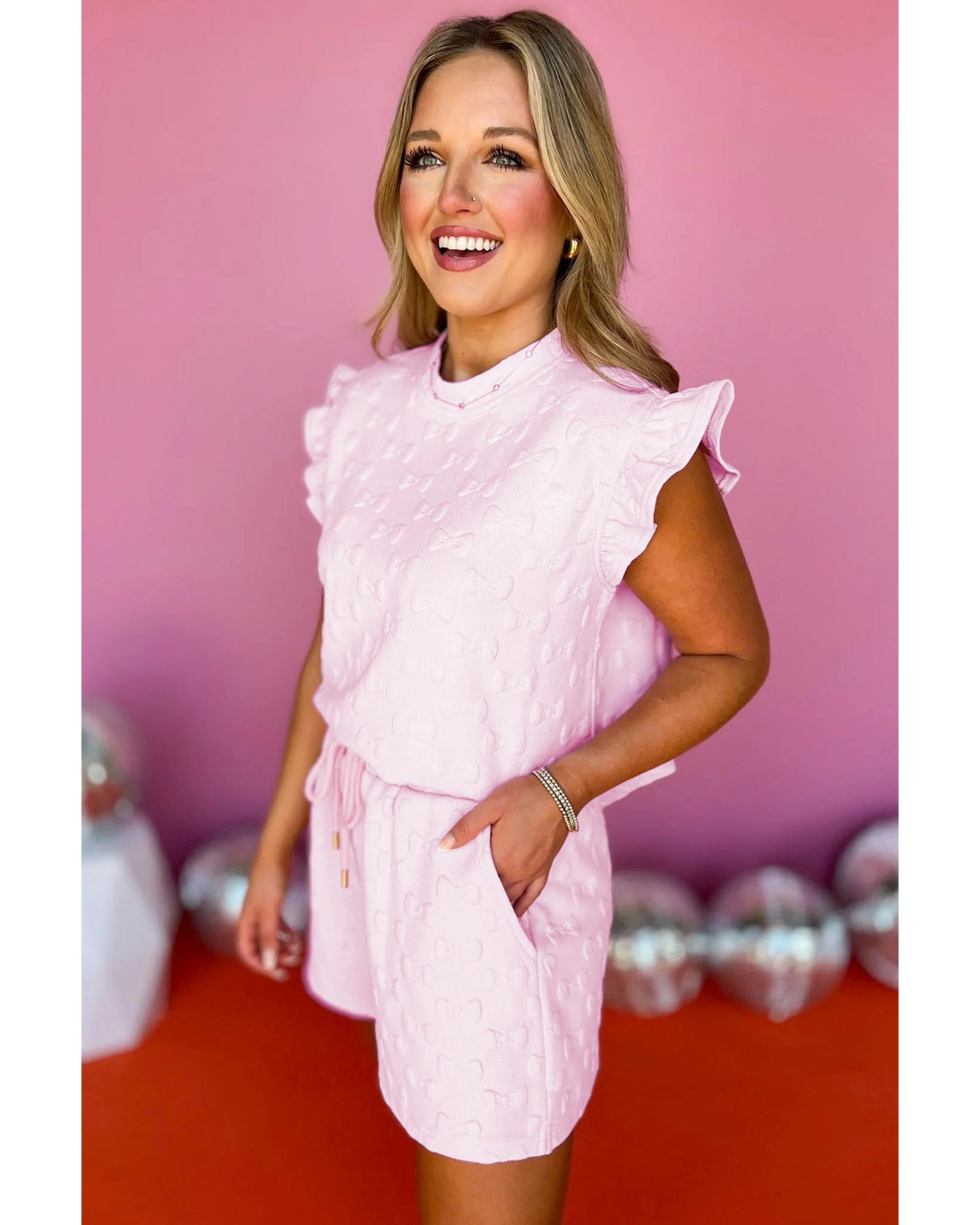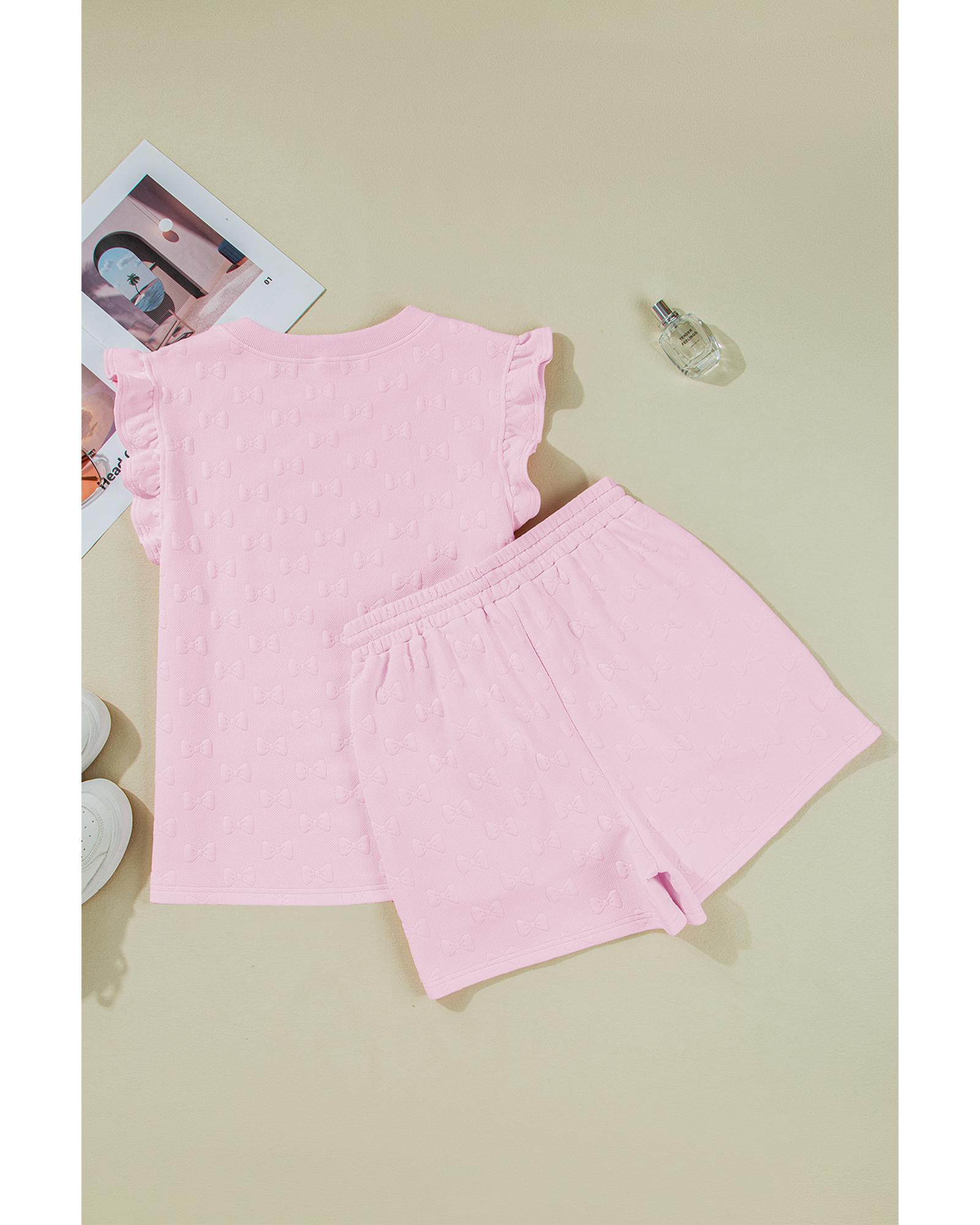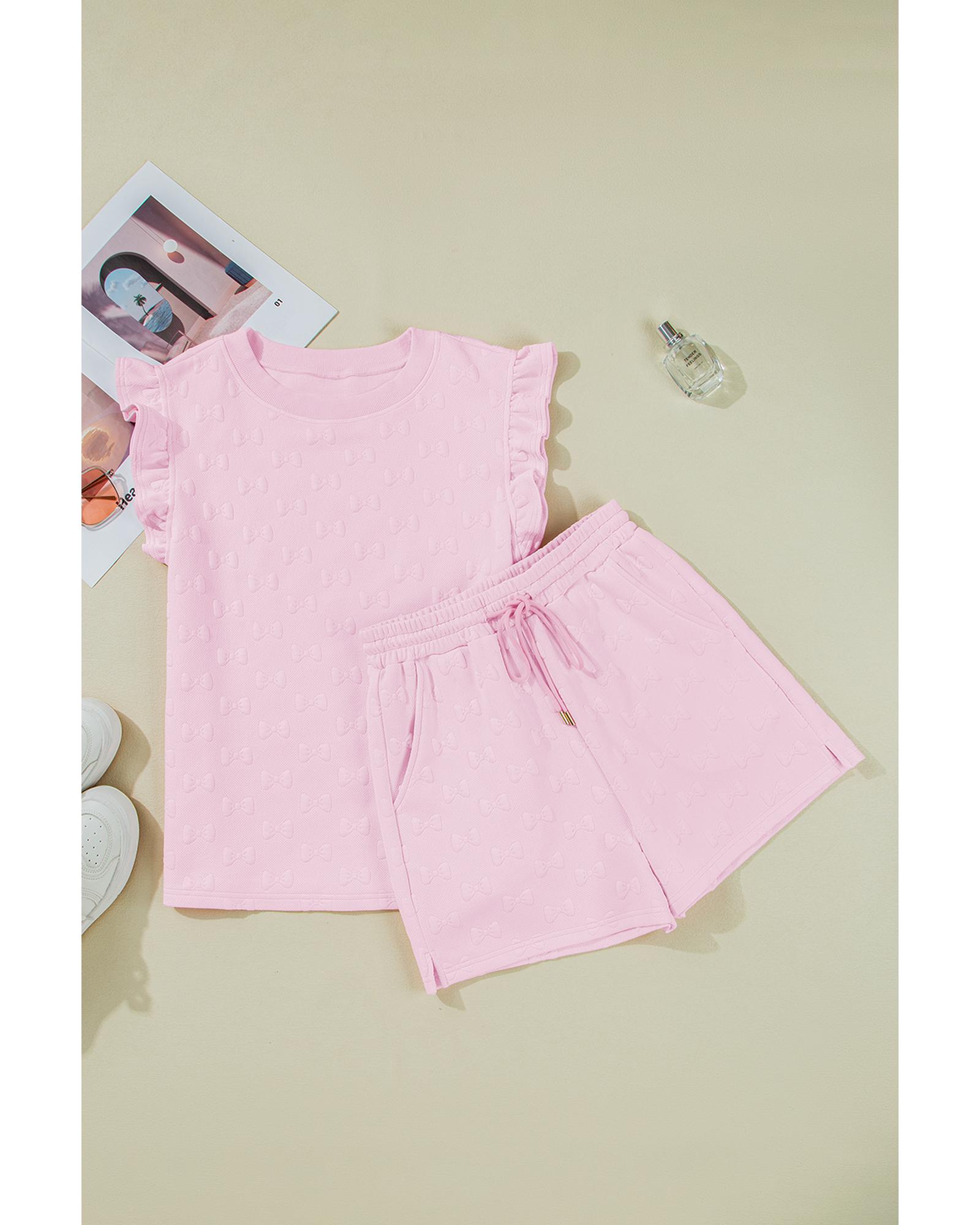 Pink Bow Jacquard Ruffle Sleeve Short 2pcs Outfit – XL