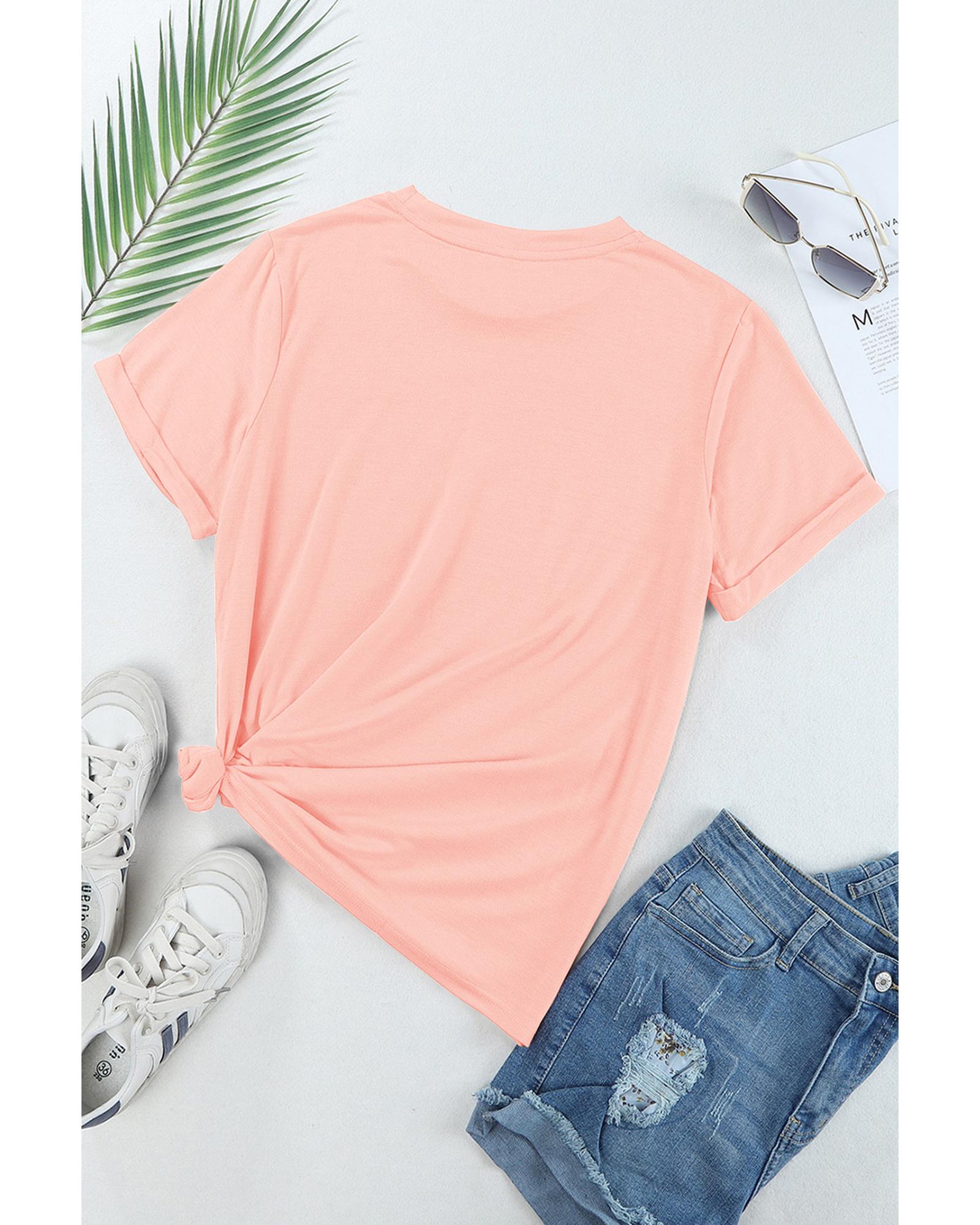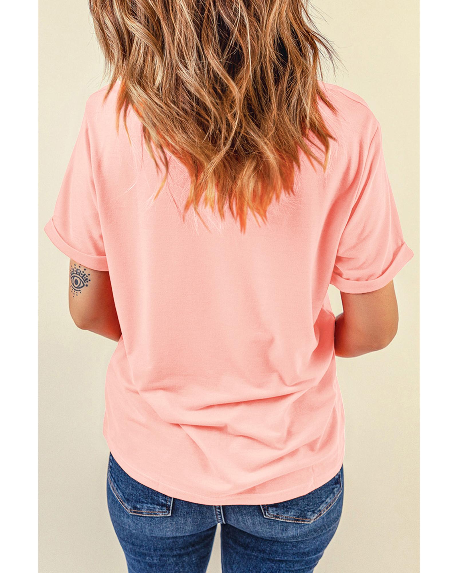 - Pink Bow Knots Print Slim Fit Crew Neck T
