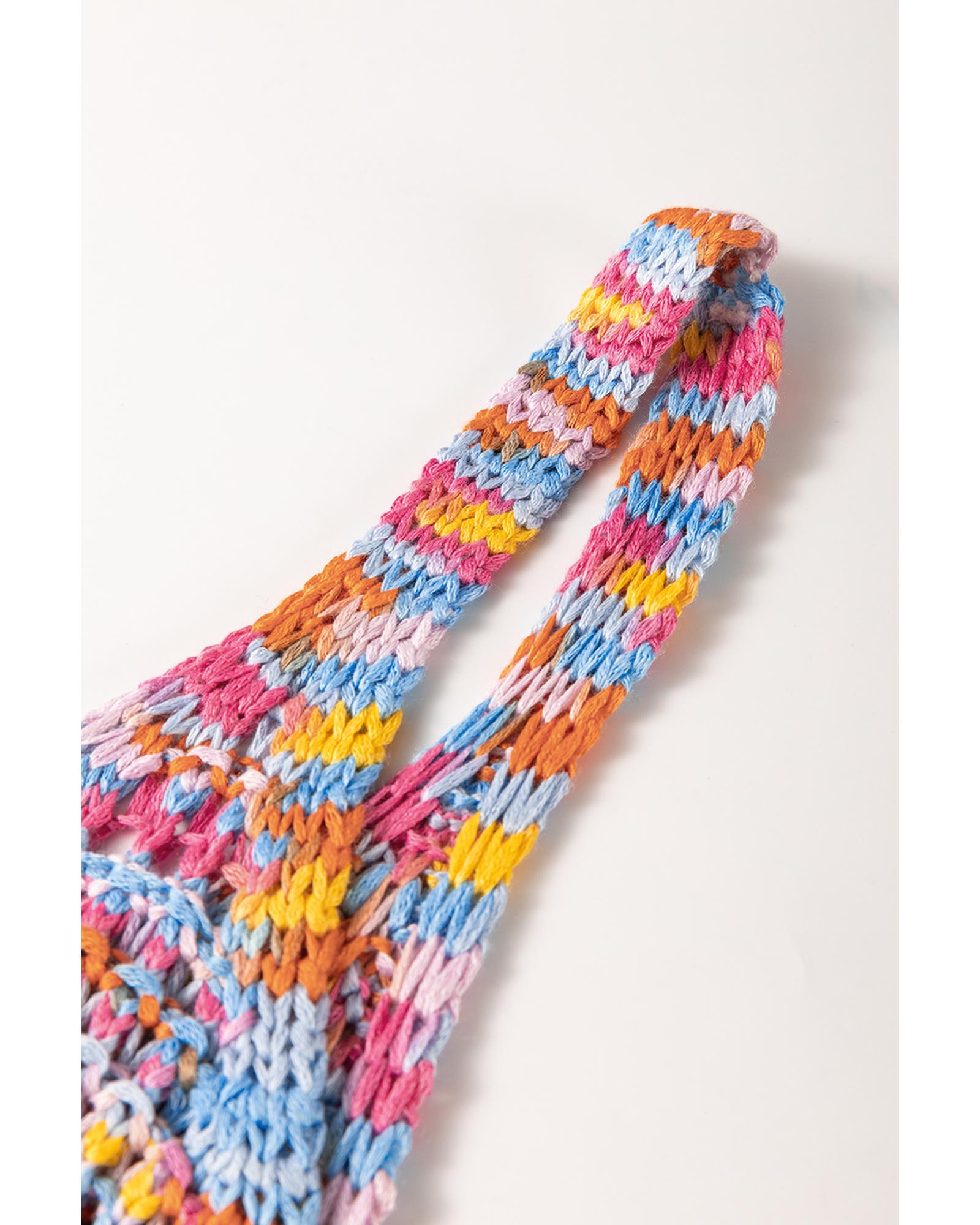 Pink Color Contrast Crochet Loose Fit Sweater Vest – L