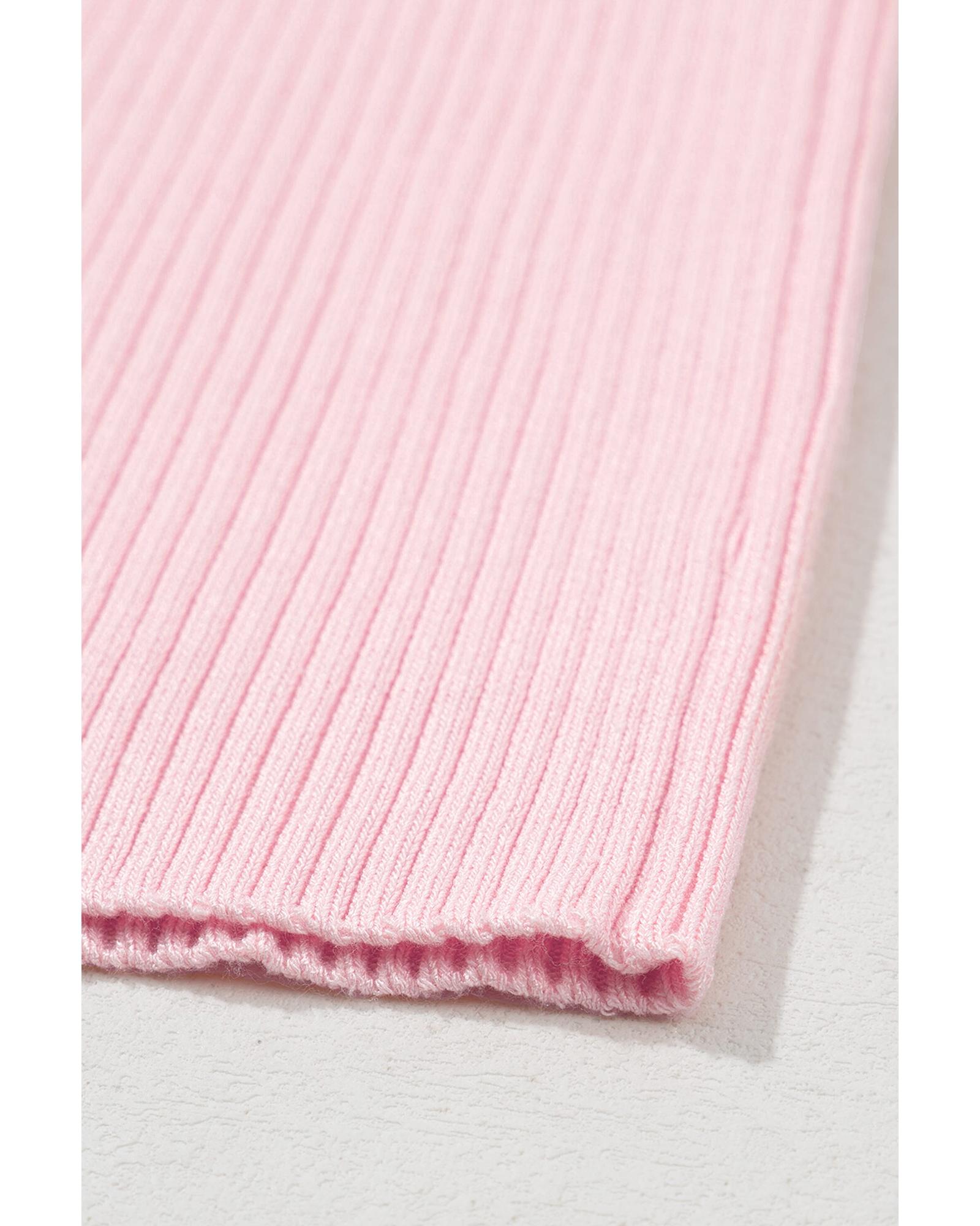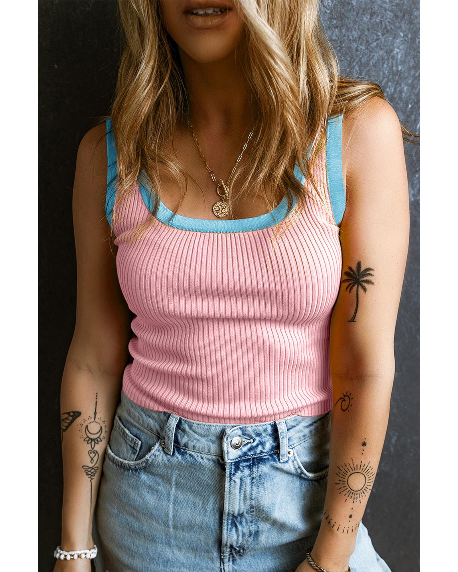 Pink Colorblock Edge Ribbed Knit U Neck Tank Top – XL