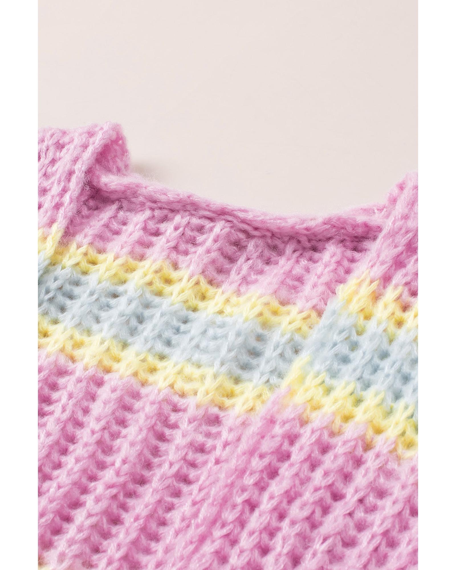 Pink Contrast Striped Open Front Cable Cardigan – L