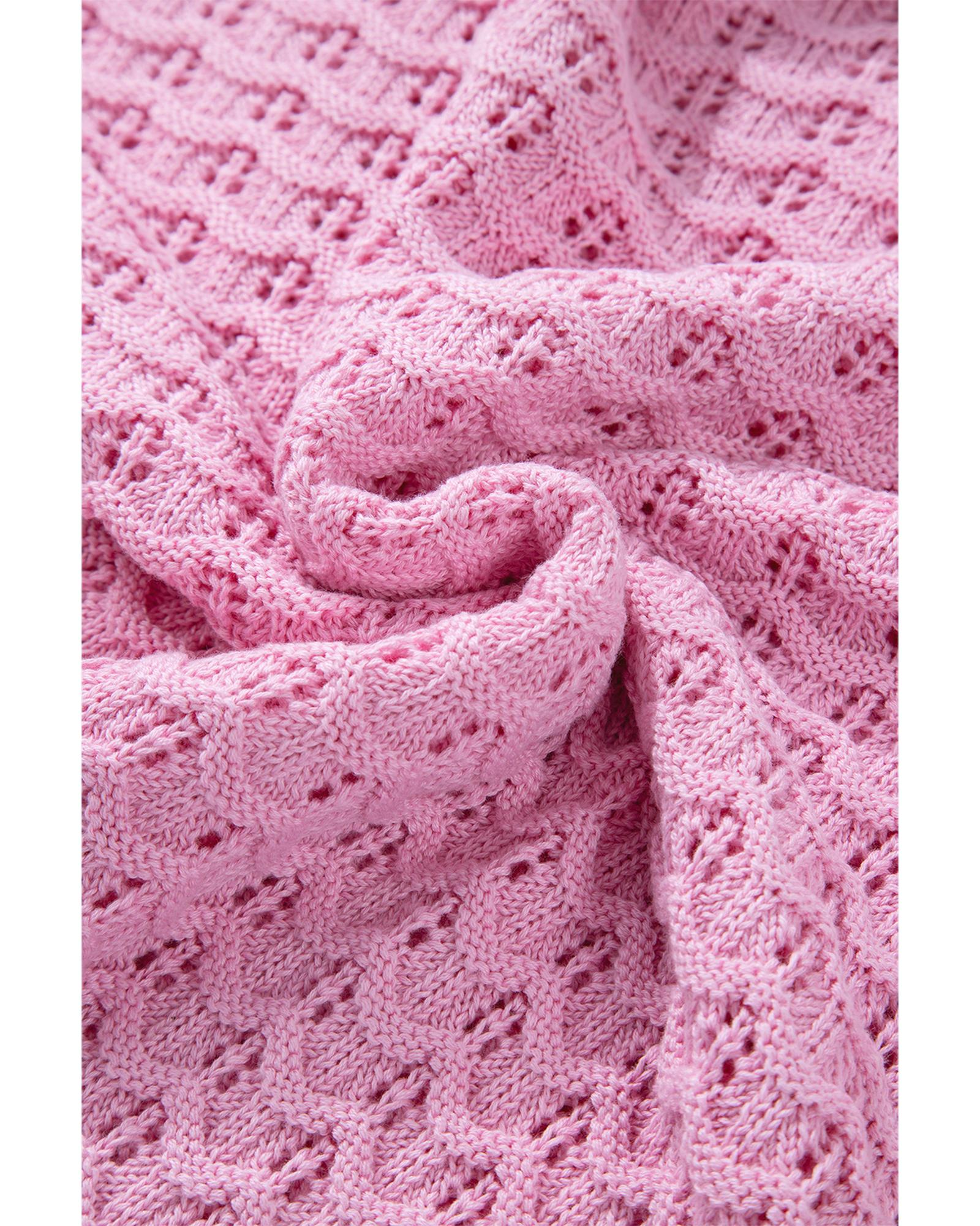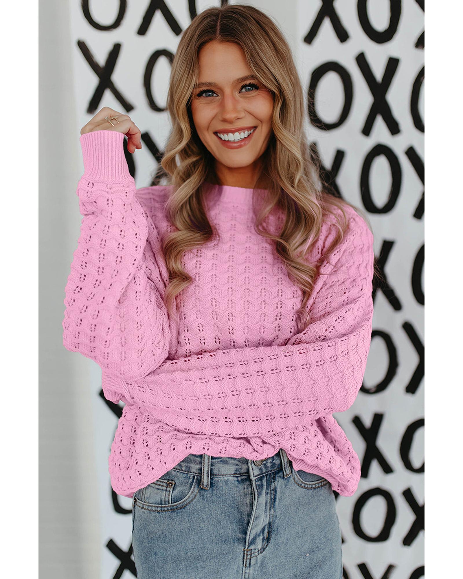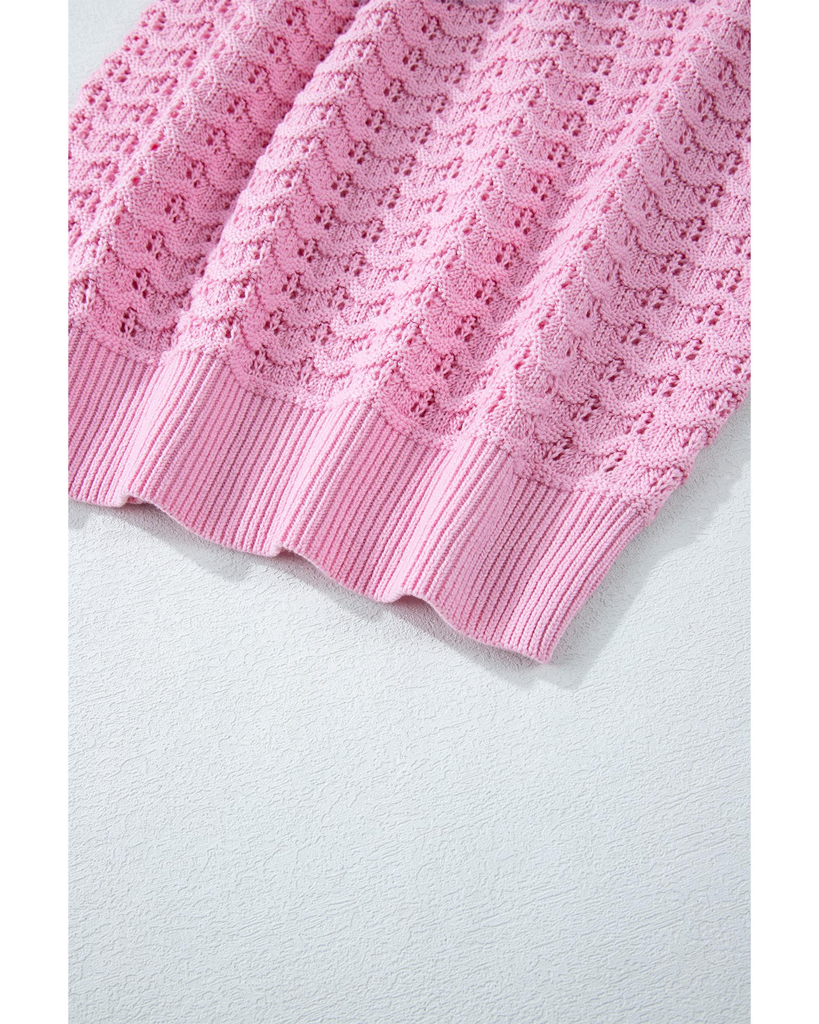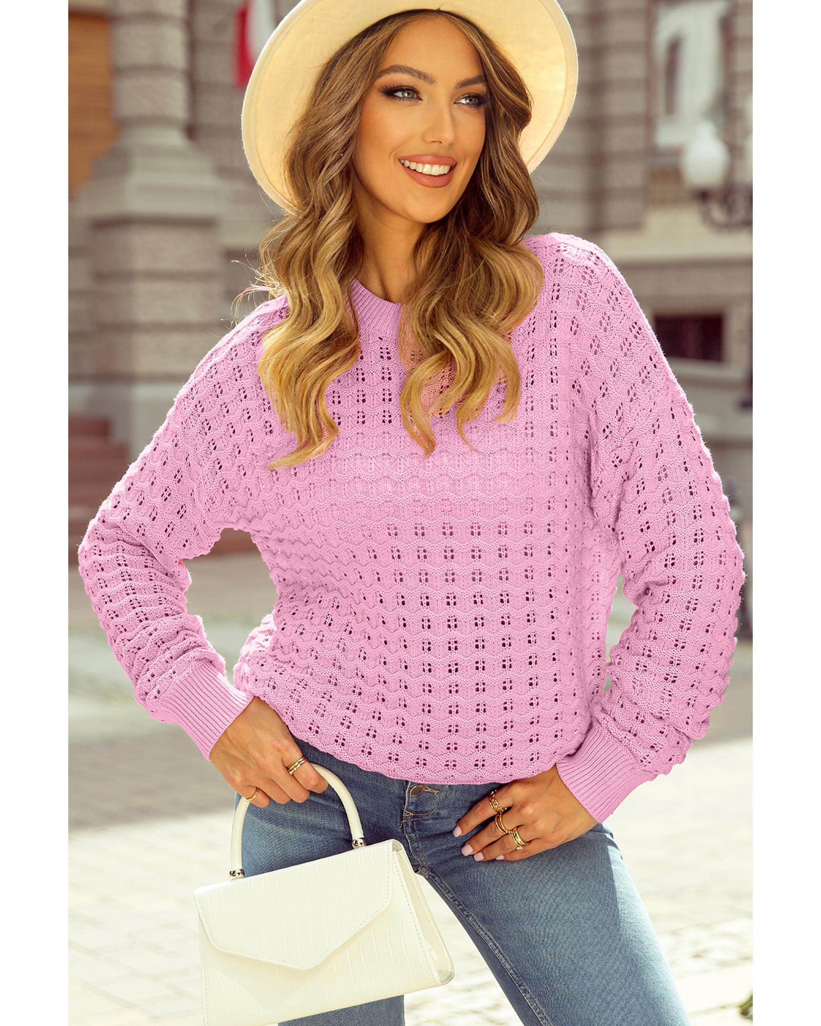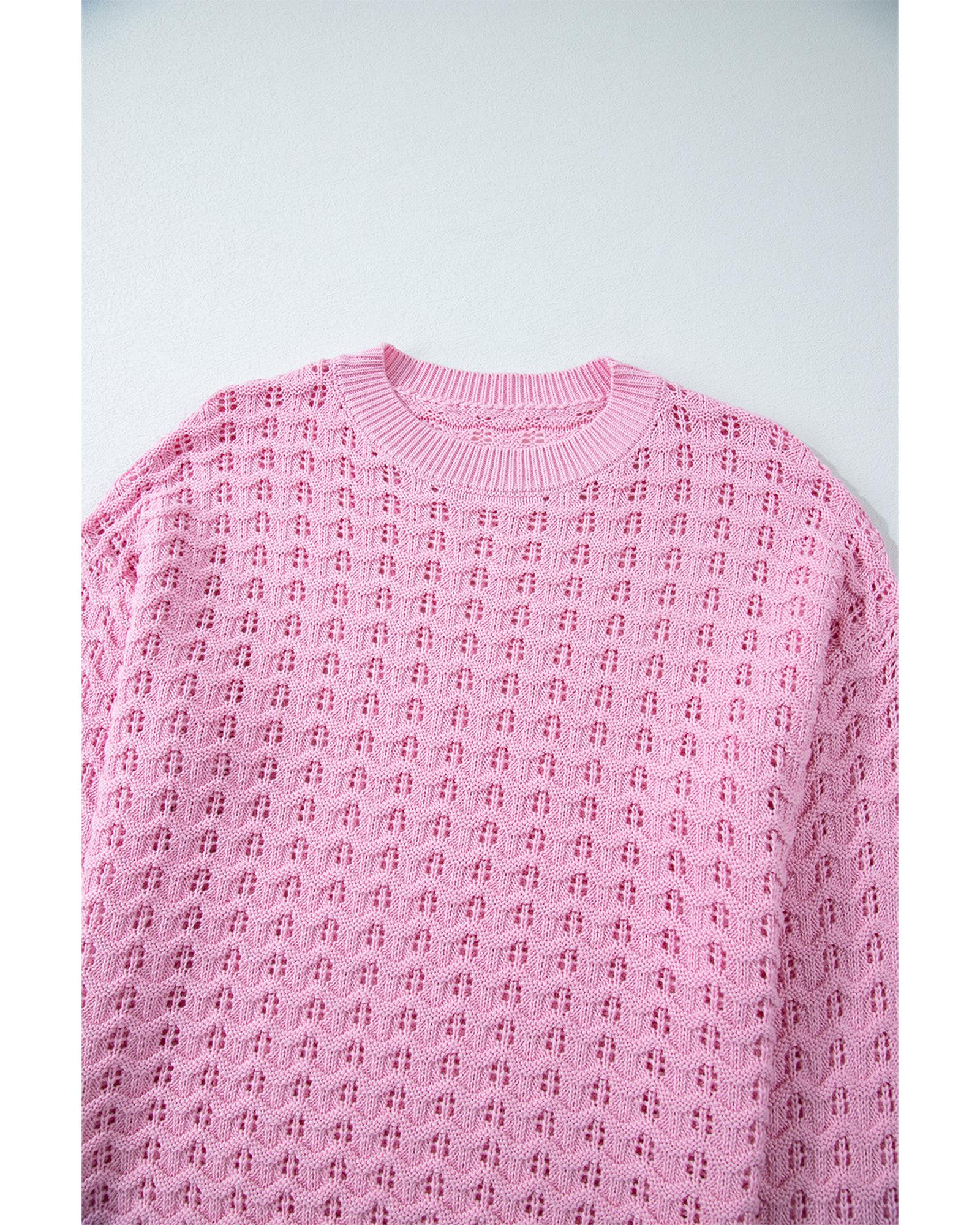 - Delicate and fashionable Pink Crochet Knit Drop Shoulder Sweater