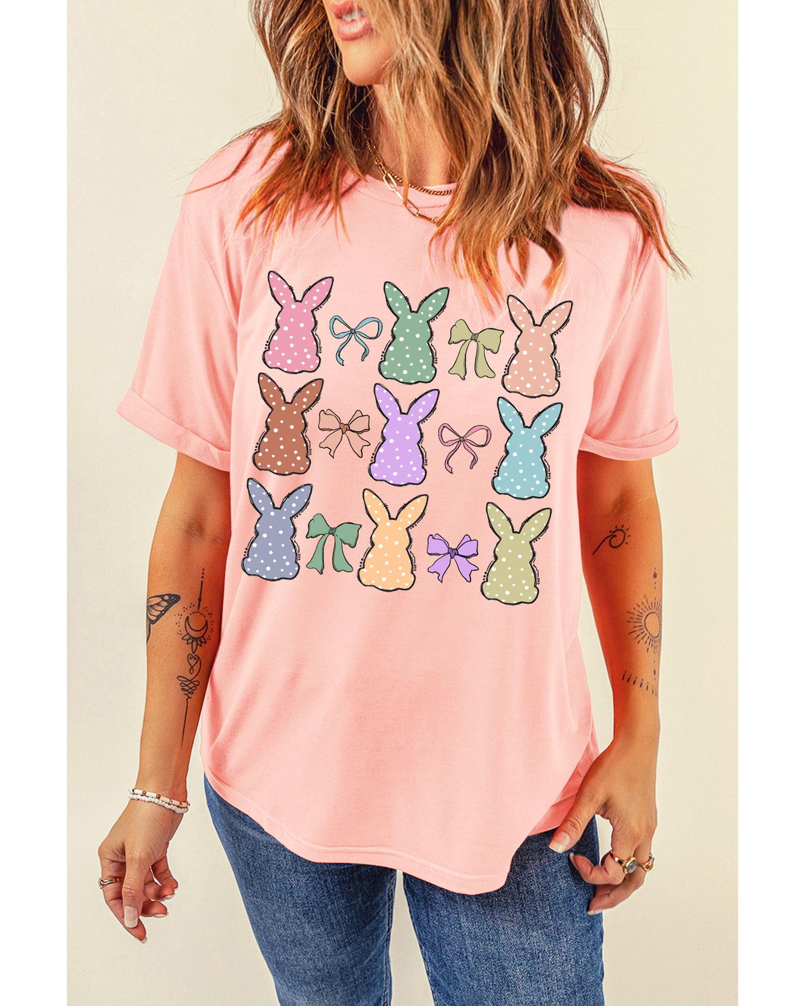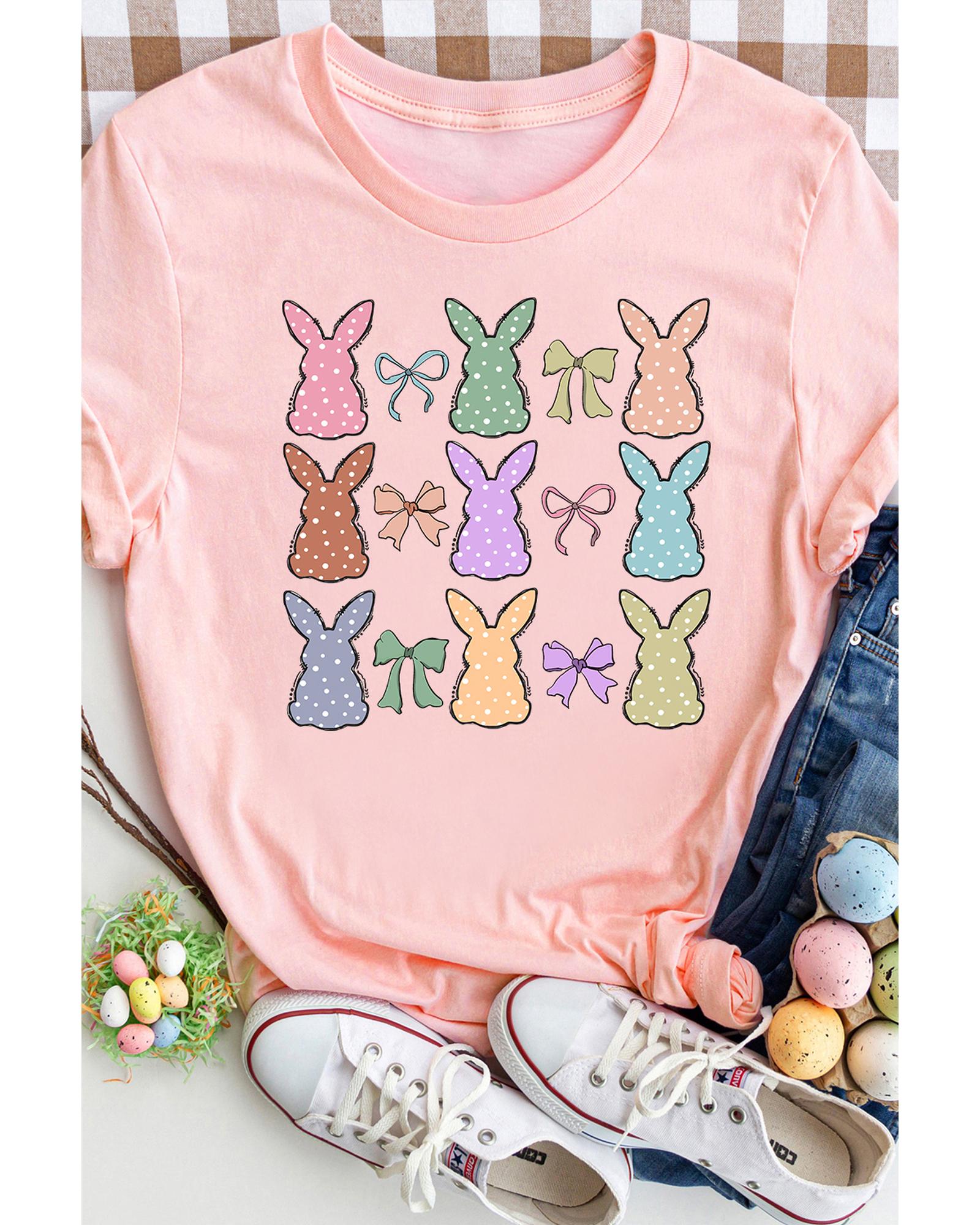 Pink Dotty Bunny Bow Printed Easter Day Fashion T Shirt – 3XL