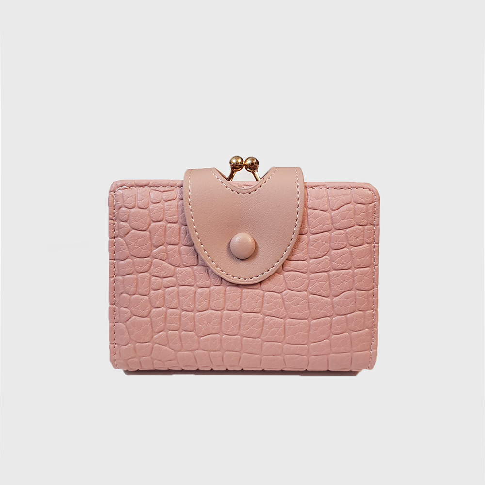 Pink Elegant Croc Embossed Womens Wallet – Short PU Leather Bifold with Removable Kisslock Coin Purse & Card Holder