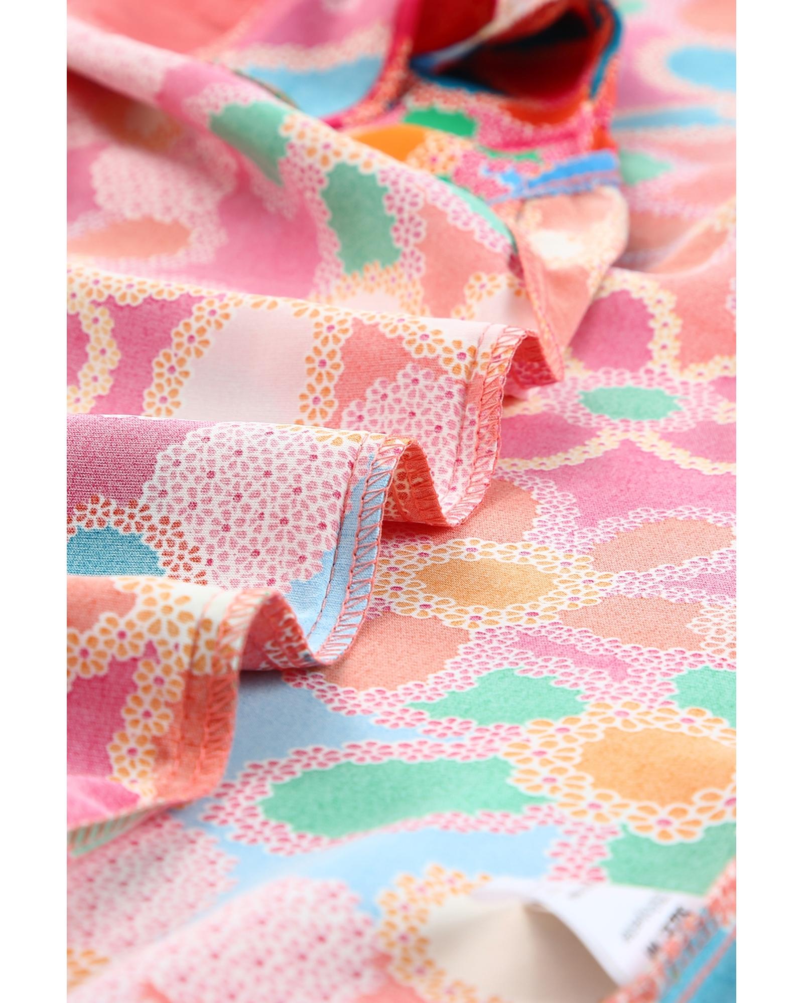 - Pink Embroidered Detail Floral Print Ruffle Trim Tank Top