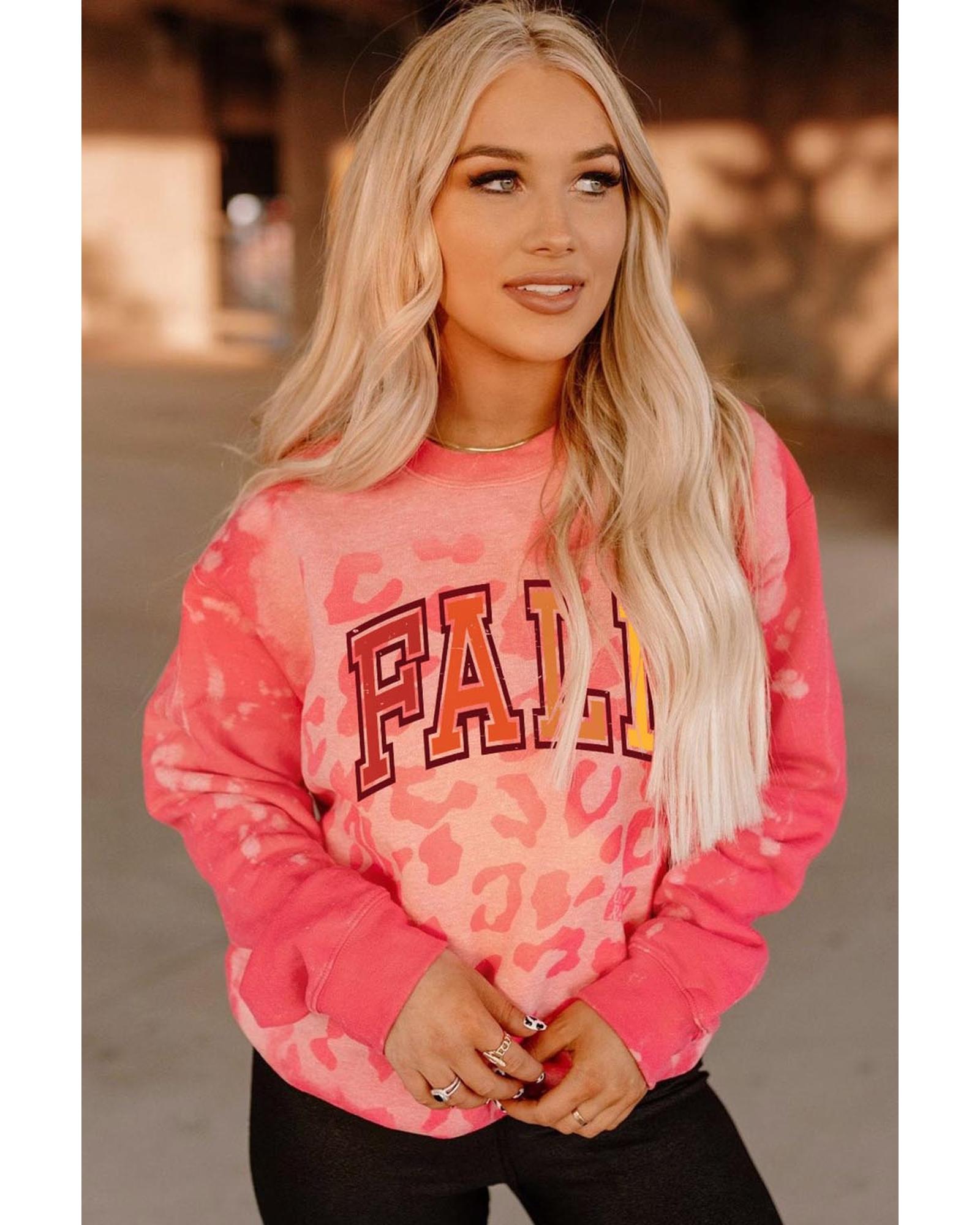 Pink FALL Leopard Print Long Sleeve Pullover Sweatshirt Made with high - quality materials for comfort and durability Stylish leopard print design adds a trendy touch Available in multiple sizes for a perfect fit Detailed size chart for easy size selection Ideal for staying fashionable and cozy during the fall season