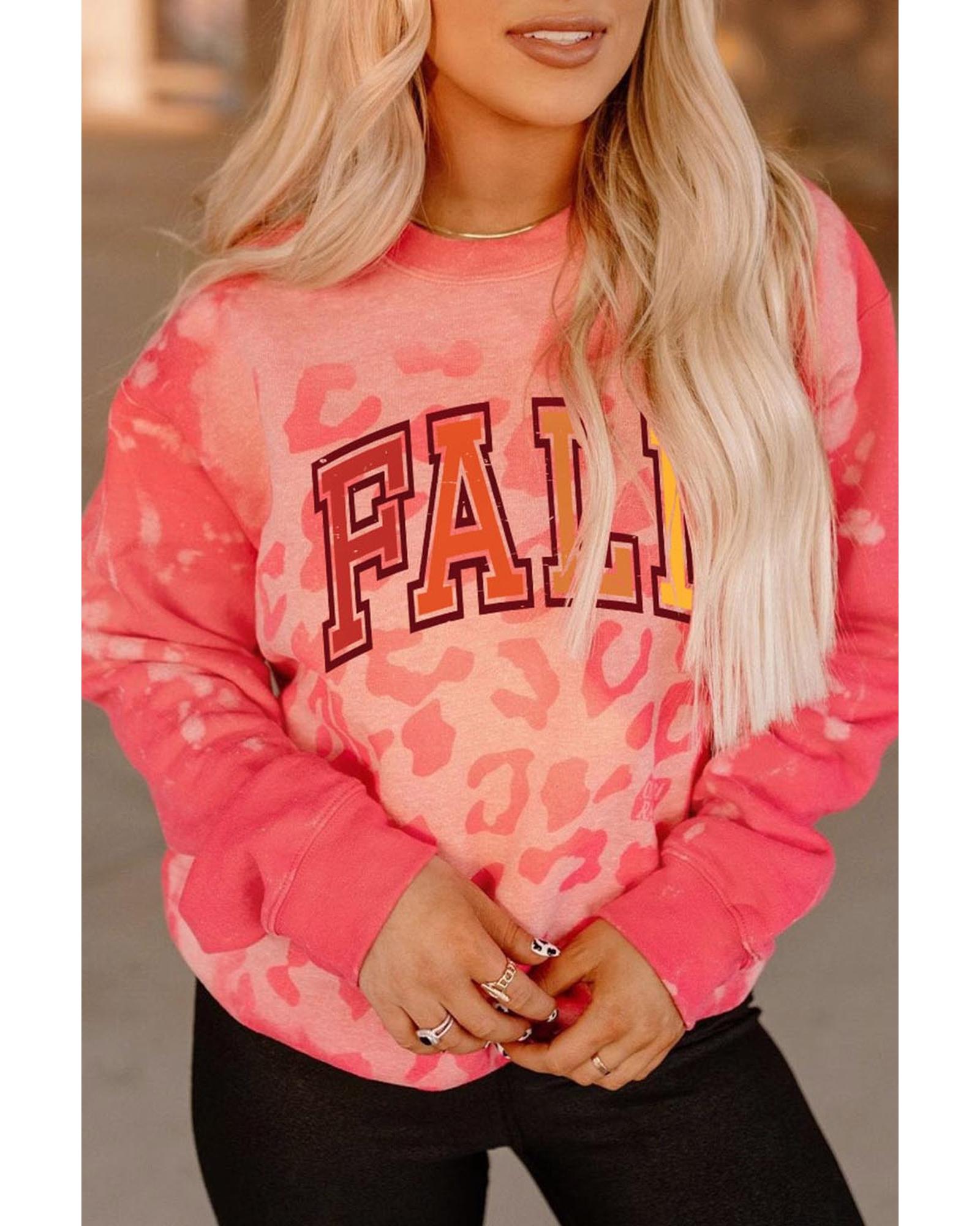 Pink FALL Leopard Print Long Sleeve Pullover Sweatshirt Made with high