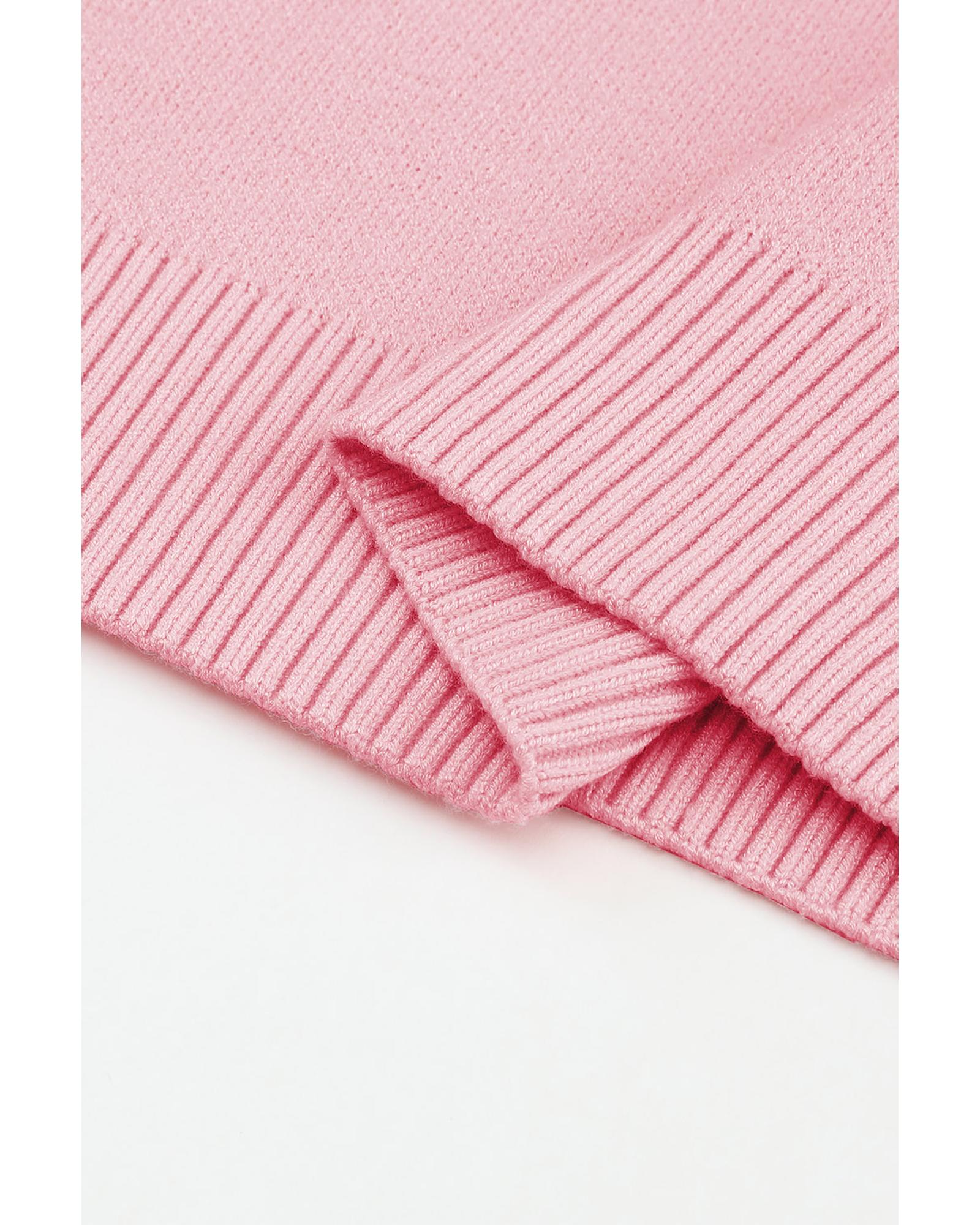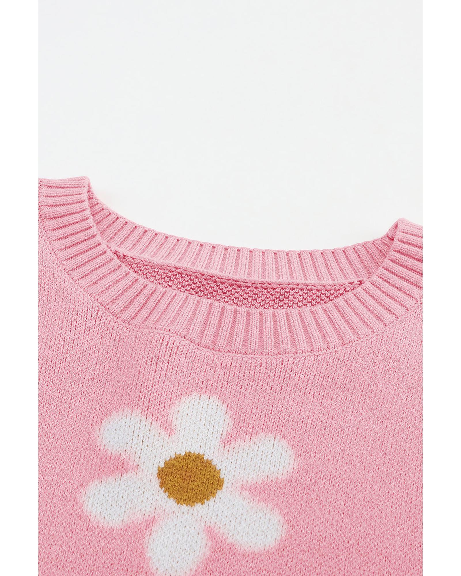 Pink Floral Pattern Drop Shoulder Sweater – S