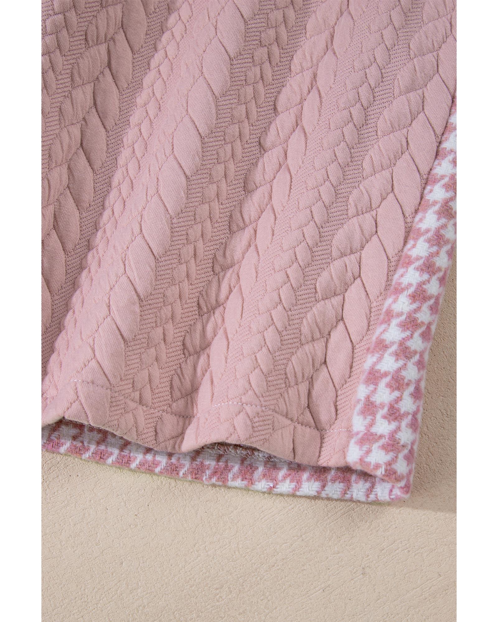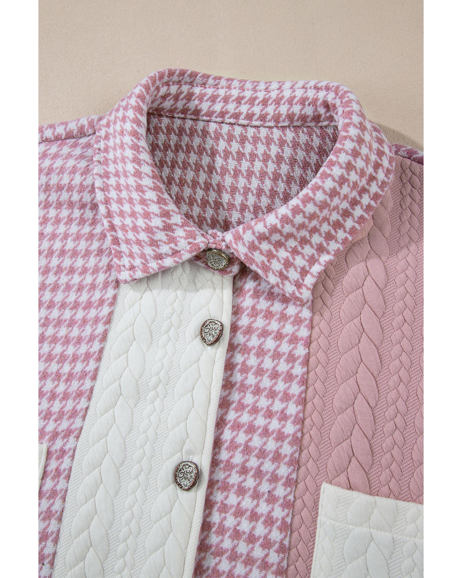 Pink Houndstooth Color Contrast Textured Patchwork Loose Shacket – M
