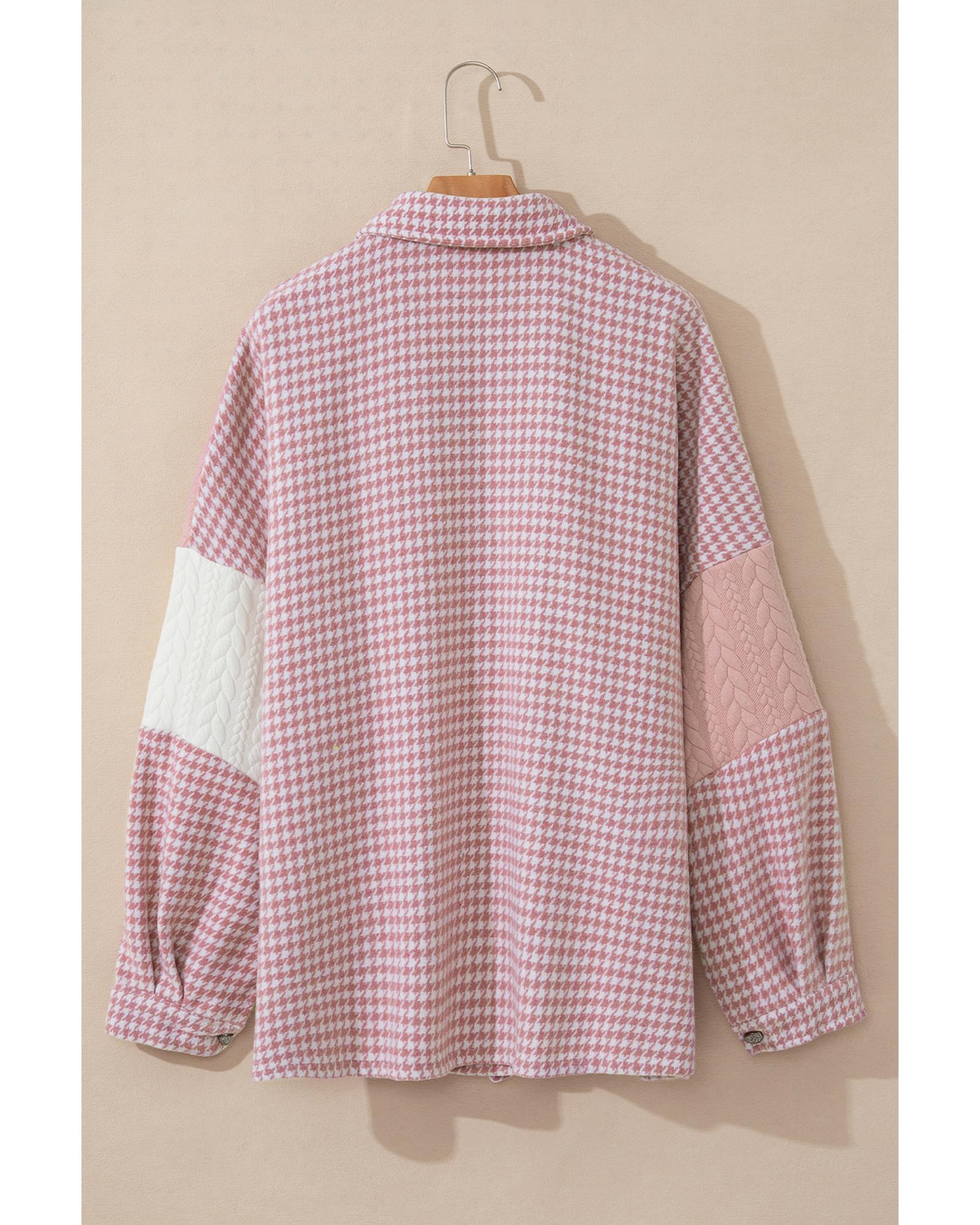 Pink Houndstooth Color Contrast Textured Patchwork Loose Shacket - M