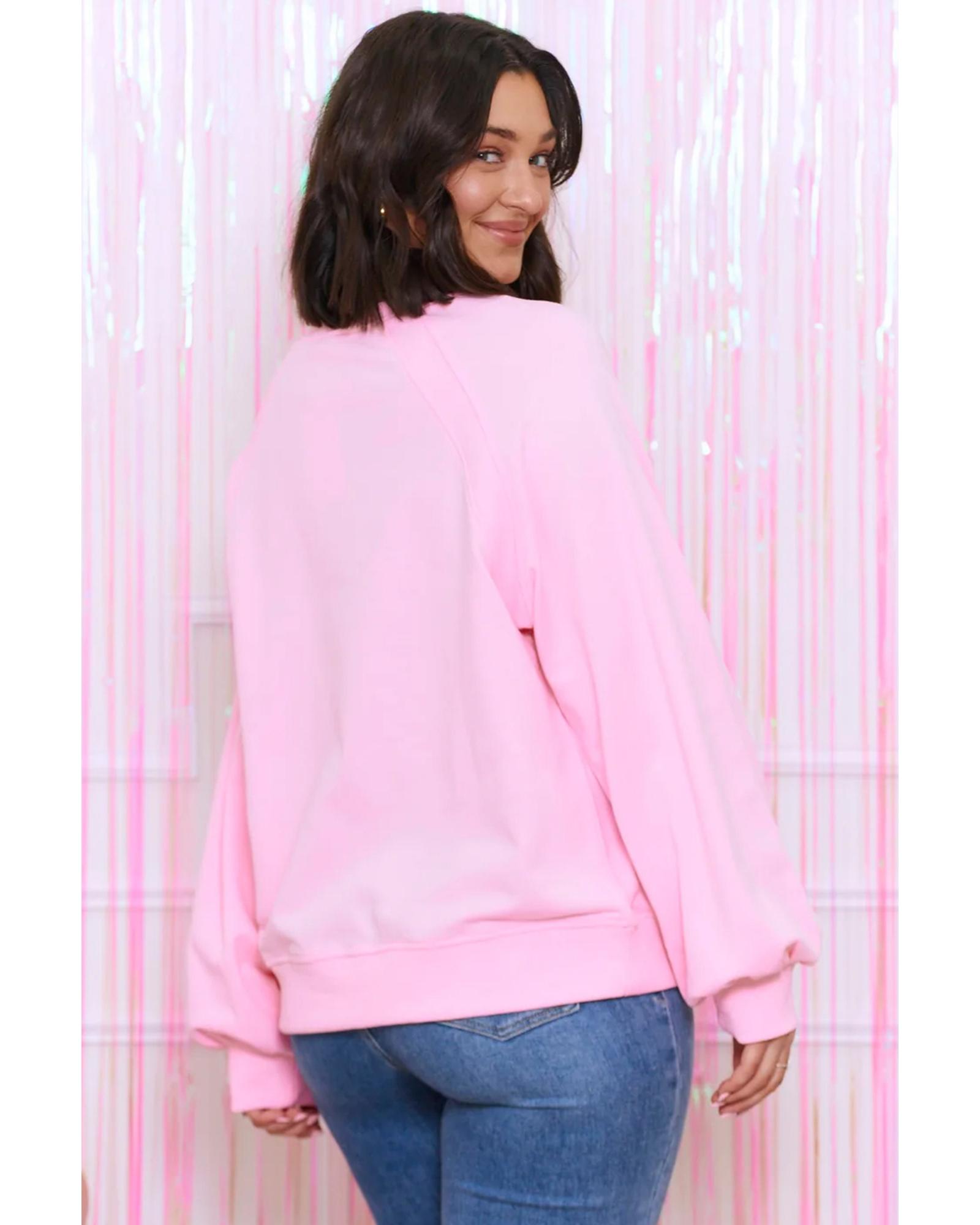 Pink Hugs and Kisses Pop Up Embroidered Raglan Sleeve Sweatshirt – L