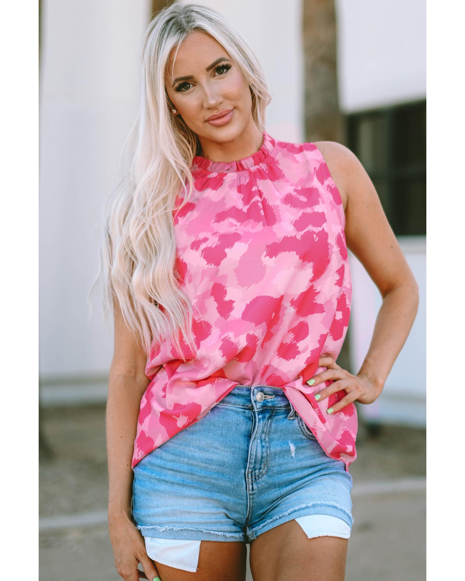 Pink Leopard Frilled Collar Printed Tank Top – XL