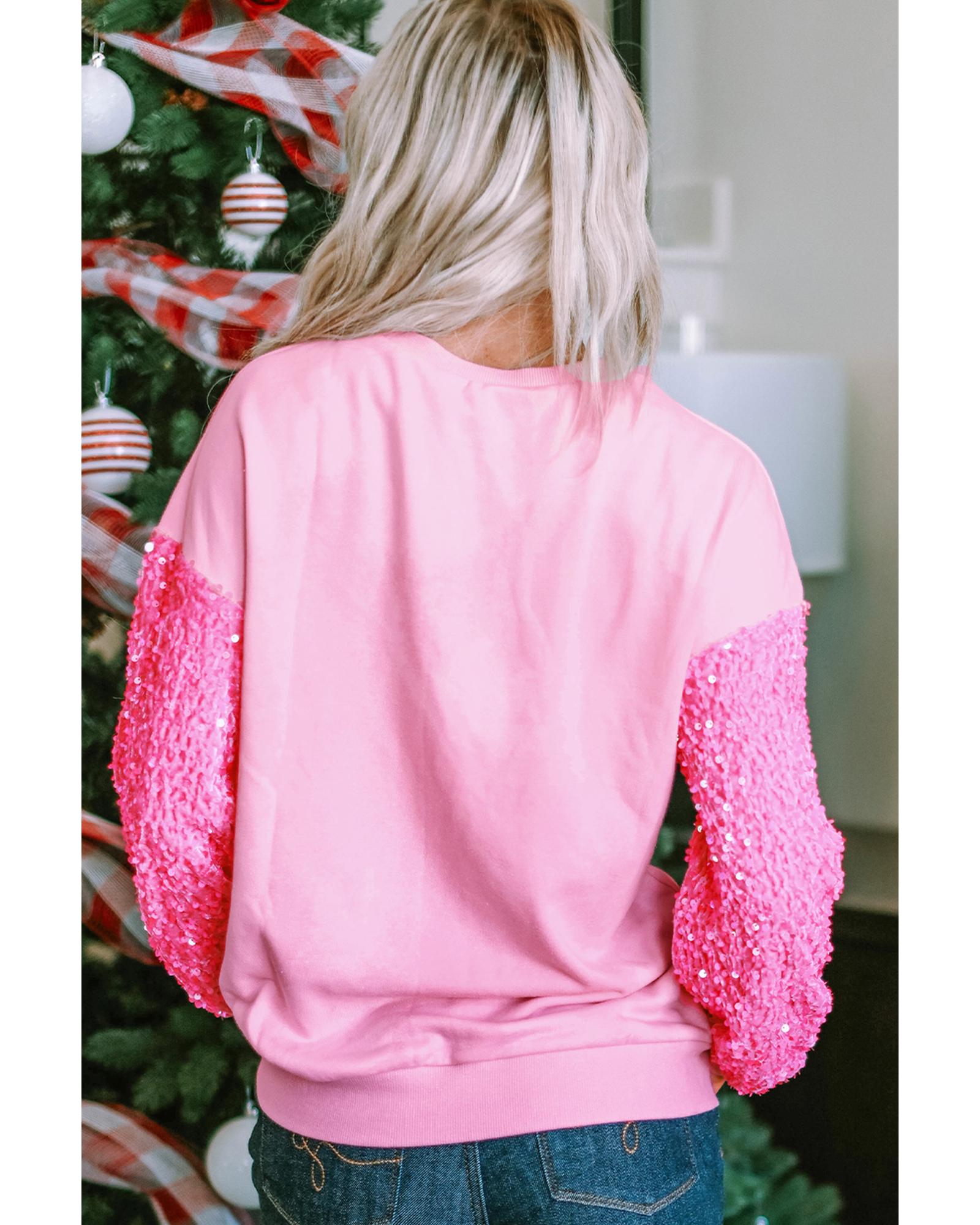 • Pink Leopard Heart Graphic Sequin Patchwork Long Sleeve Valentines Top