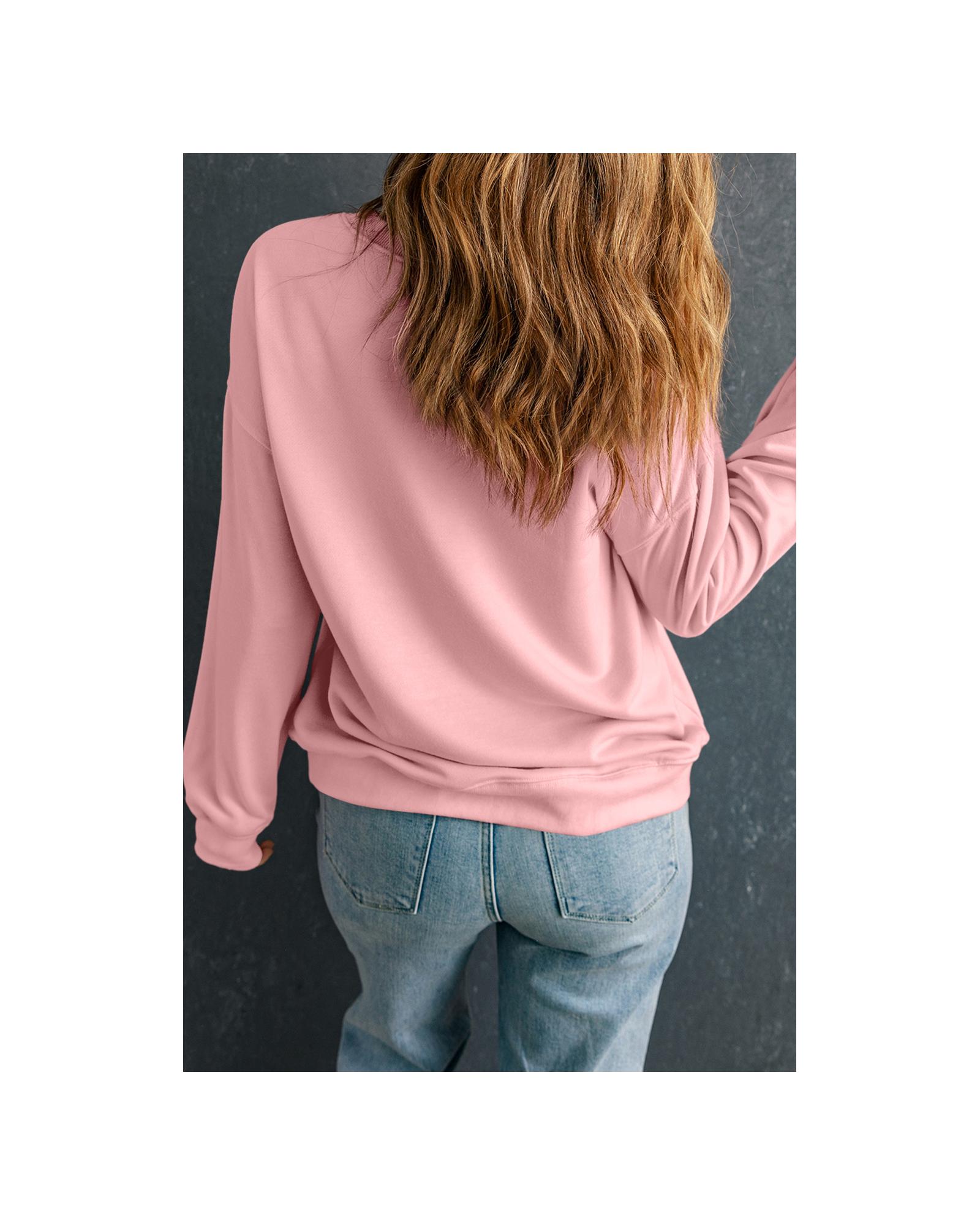 - Pink LOVE Graphic Drop Shoulder Valentines Pullover Sweatshirt