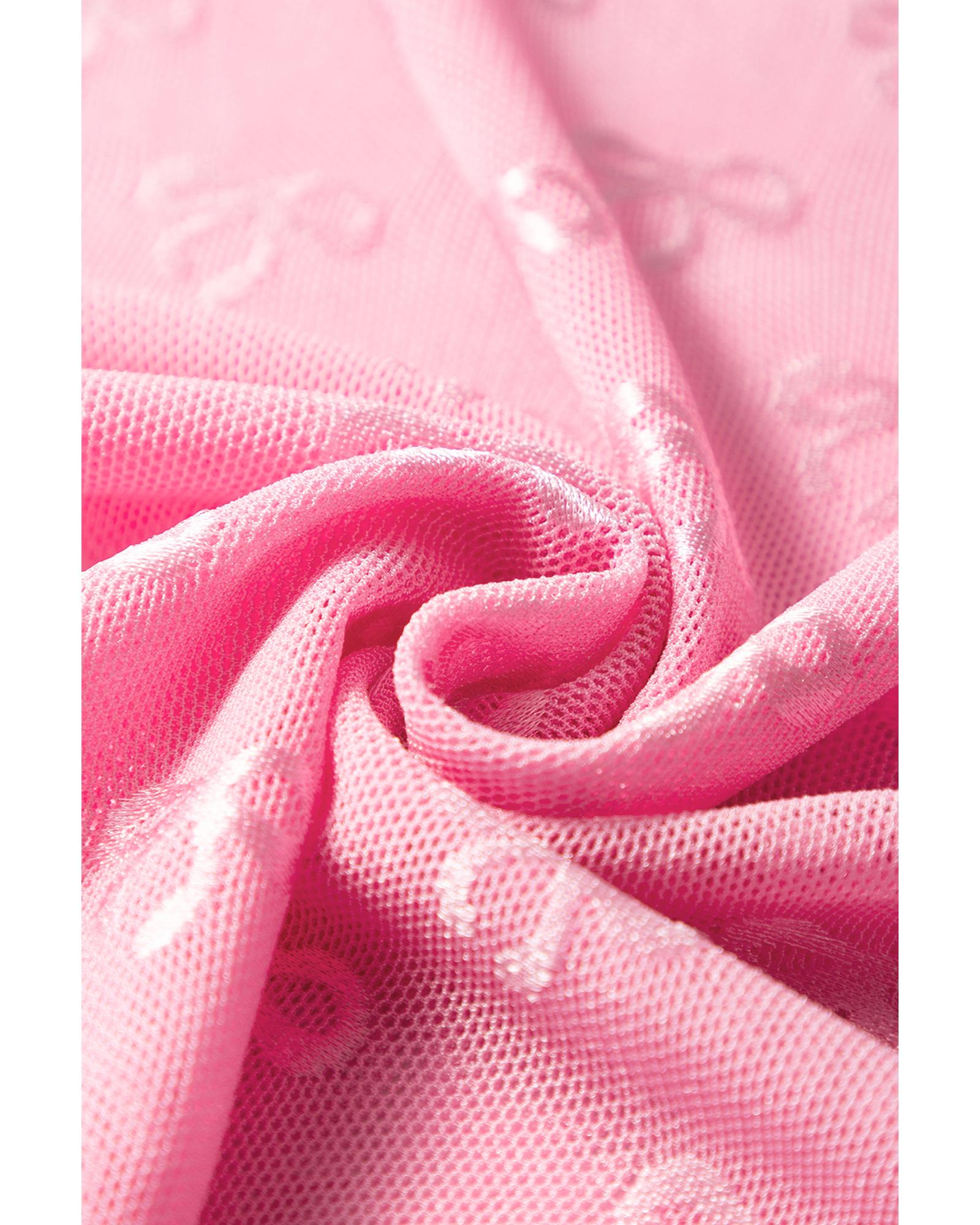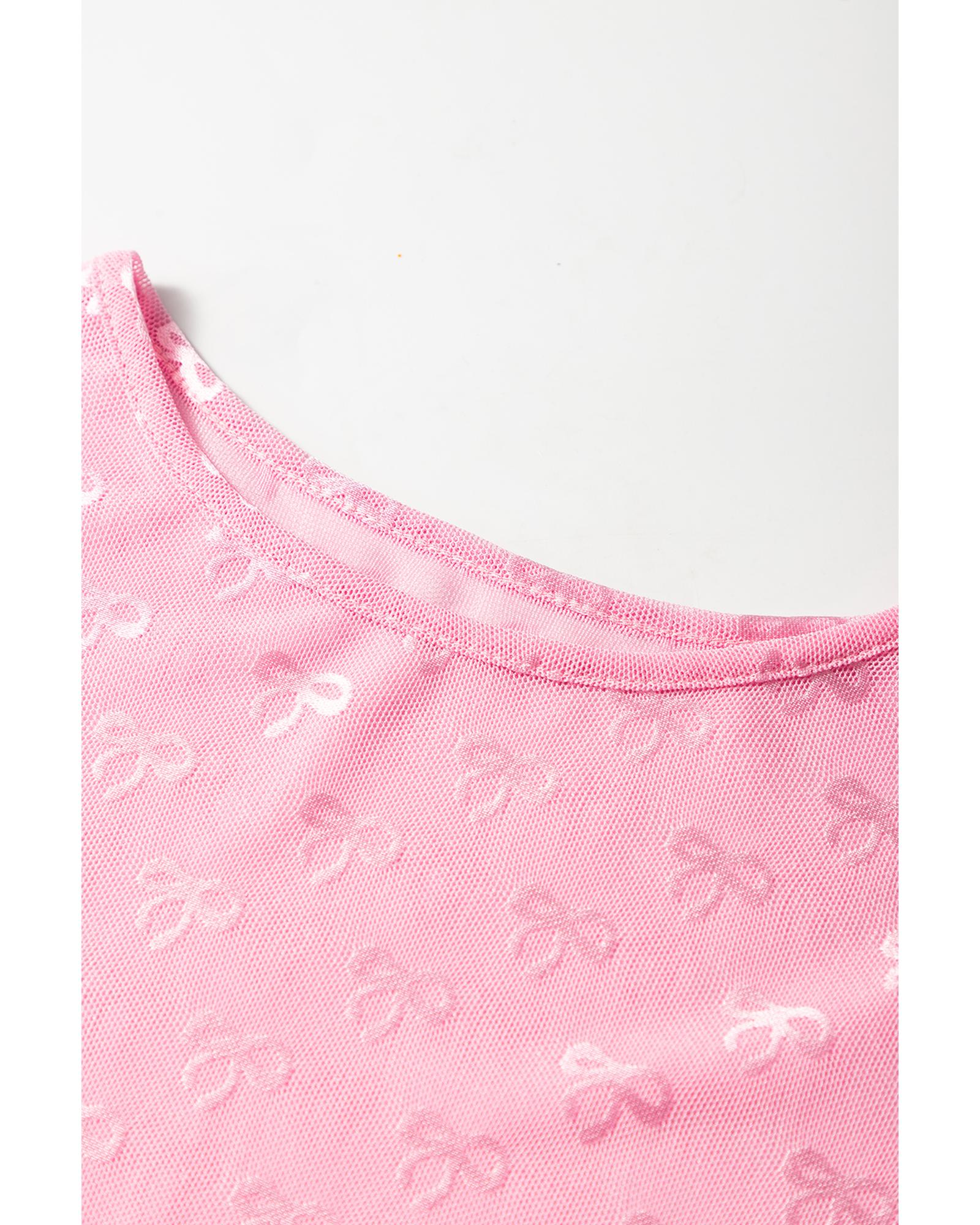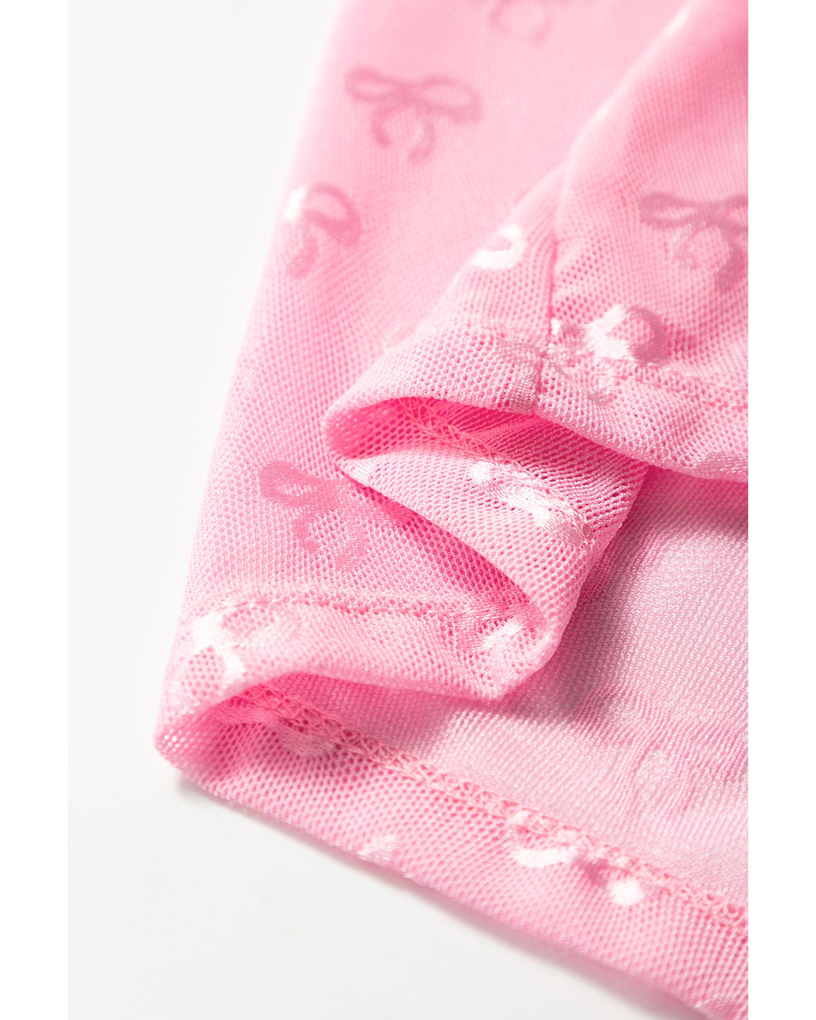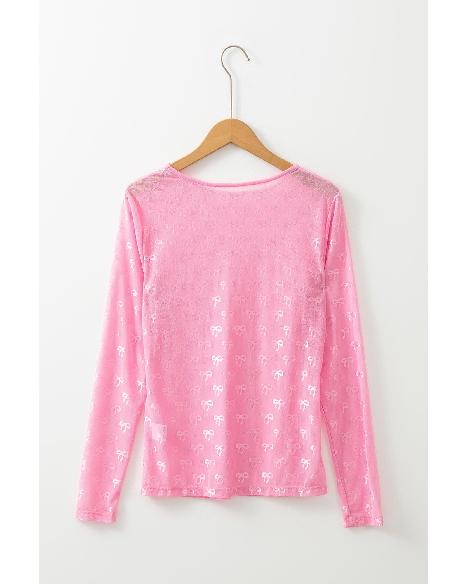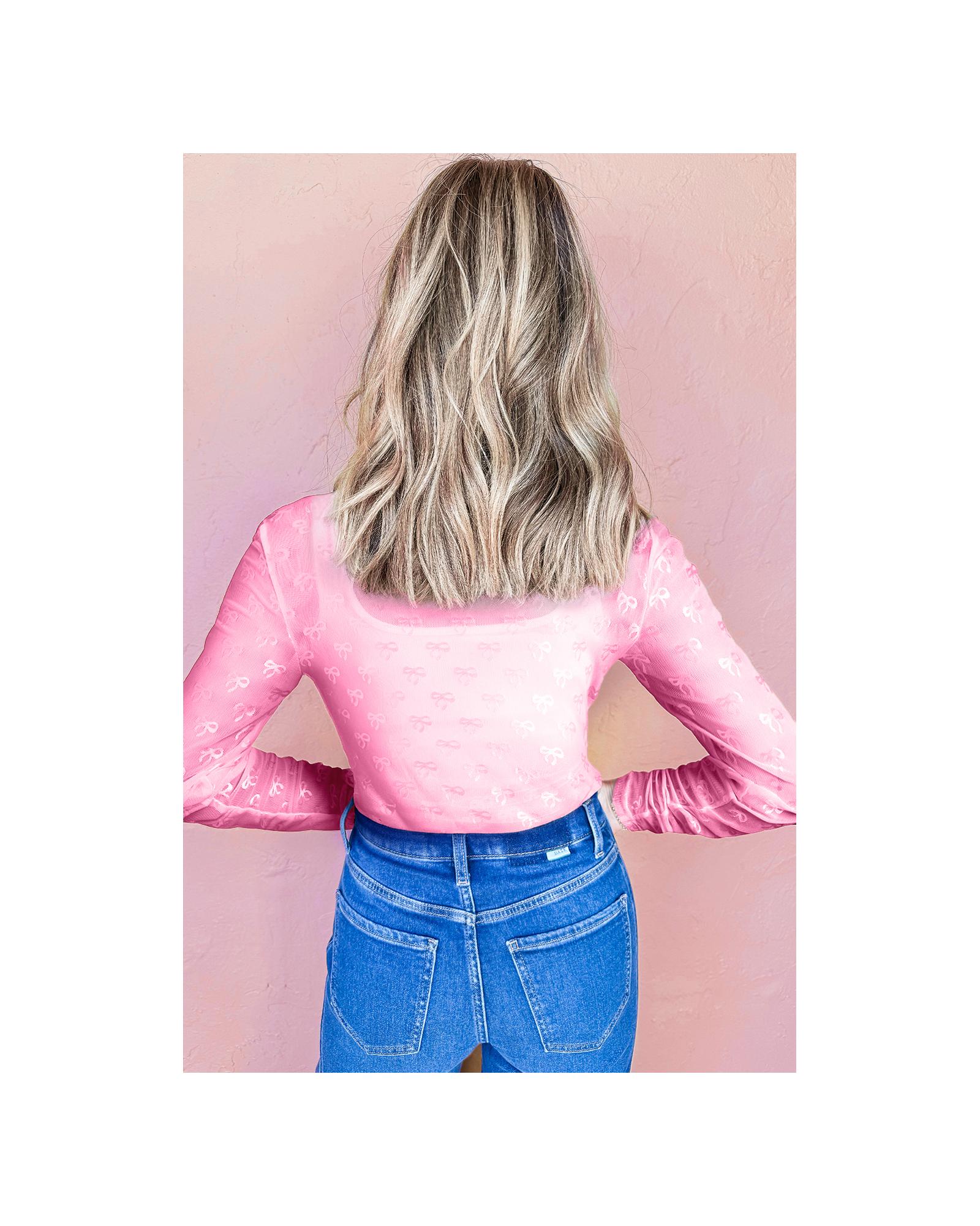 Pink Mesh Bow Pattern Long Sleeve Top – M