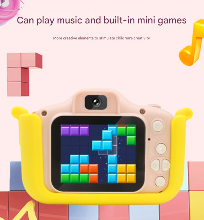 - Adorable Cat-Themed Design: Cute and colorful cat-shaped camera body with soft silicone casing for extra durability and protection.
