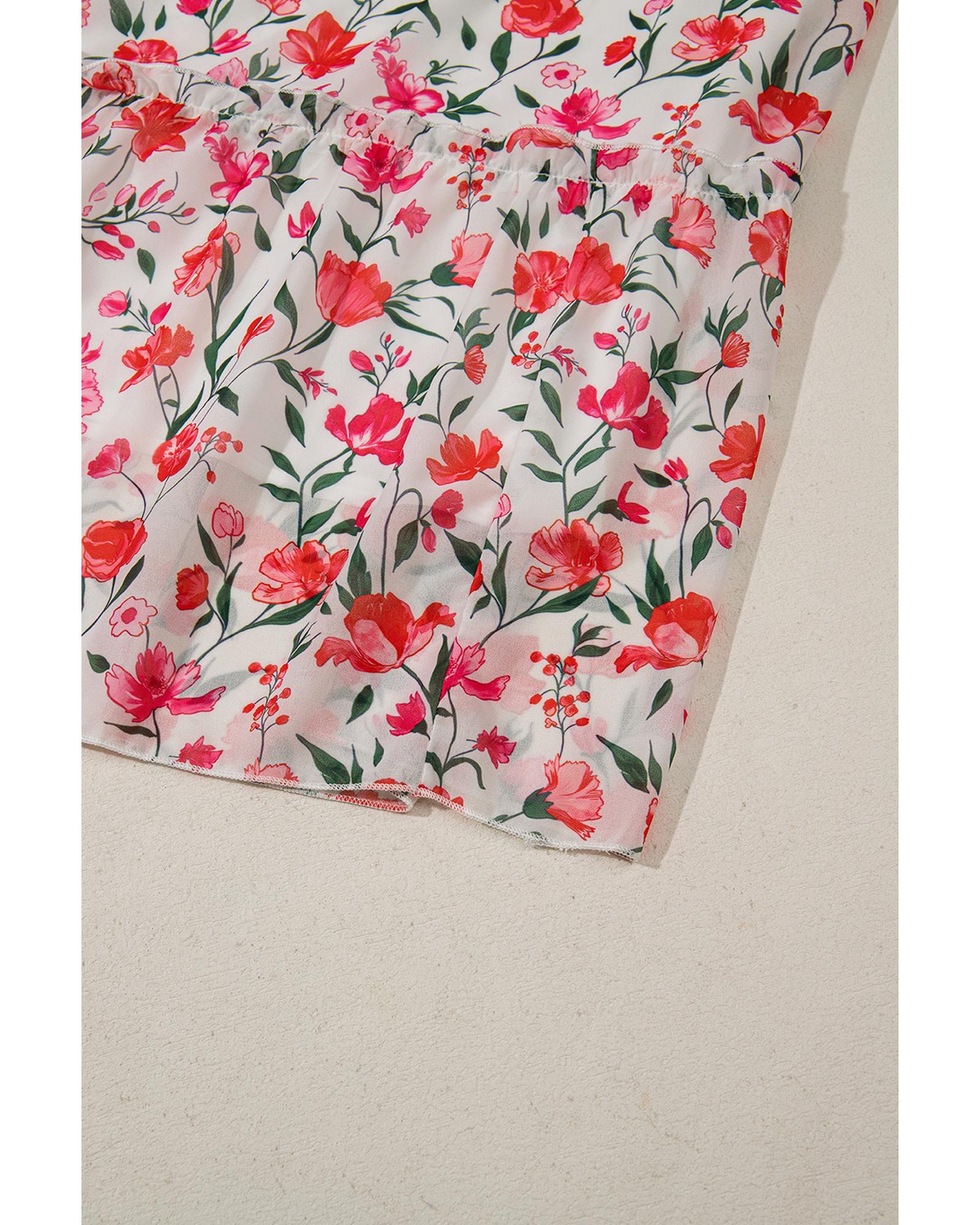 Pink Plus Size Floral Square Neck Puff Sleeve Ruffle Maxi Dress - 3X