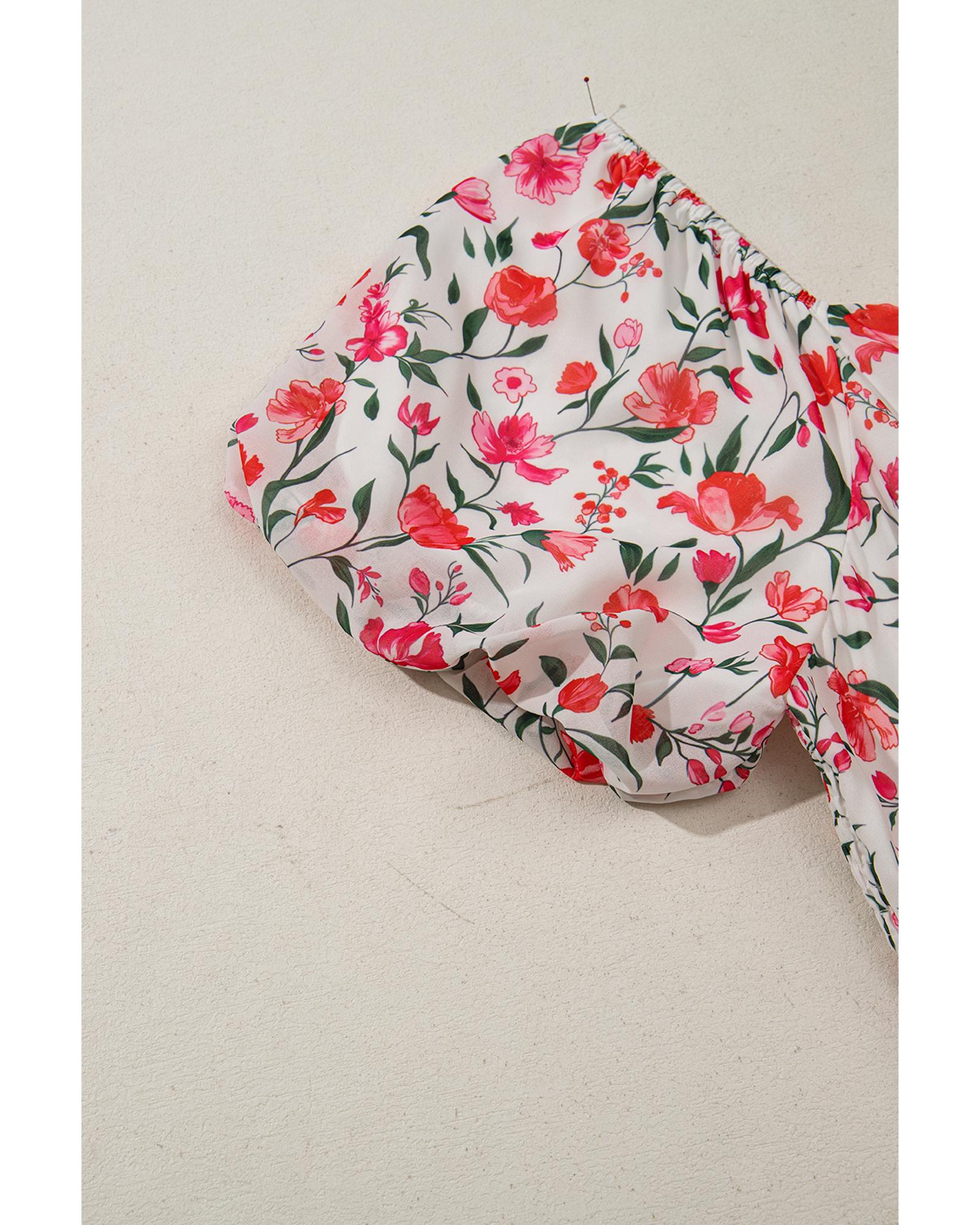 Pink Plus Size Floral Square Neck Puff Sleeve Ruffle Maxi Dress - 1X
