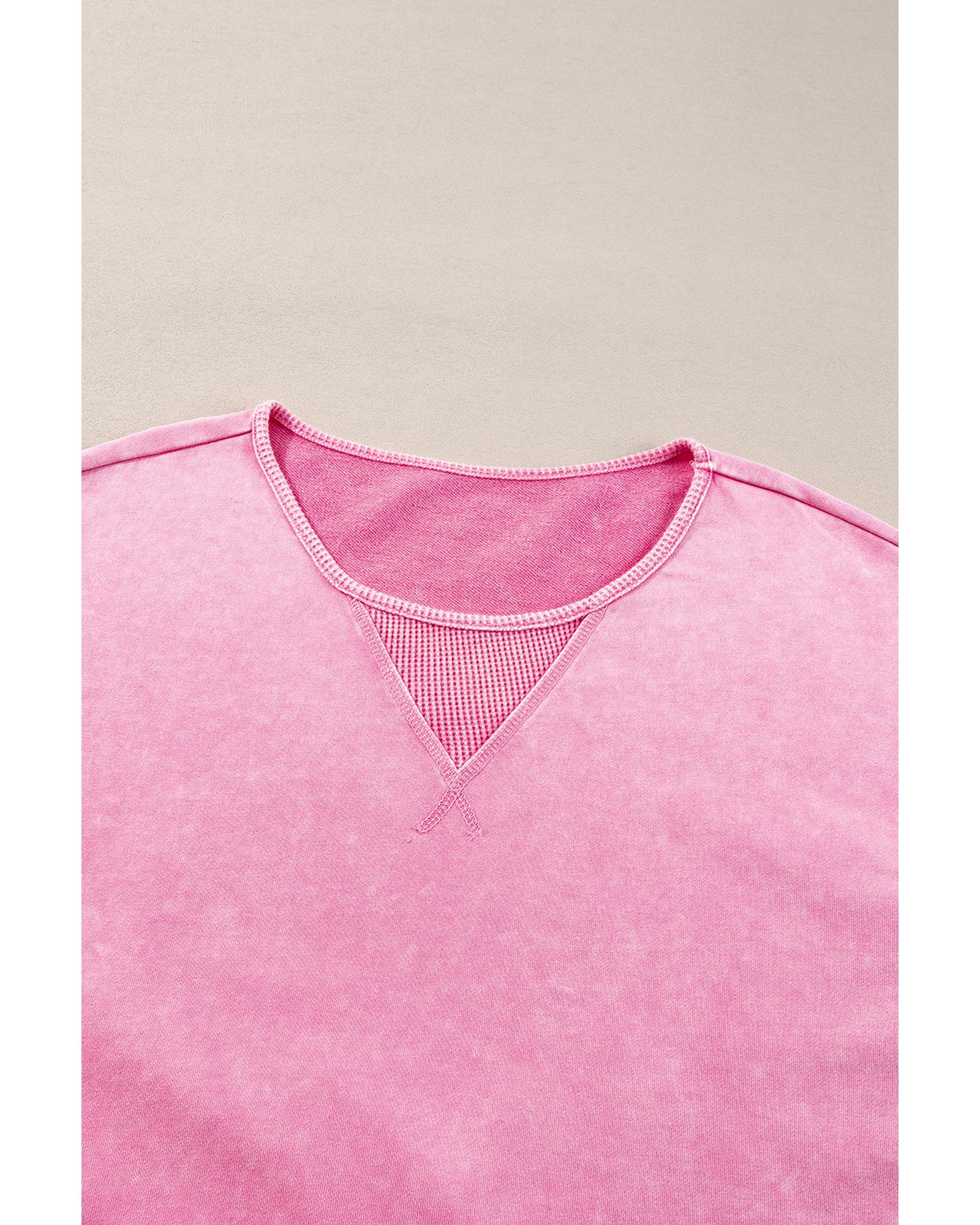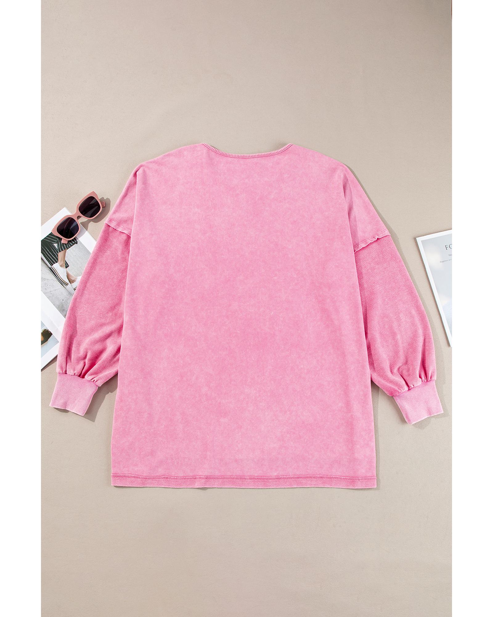 Pink Plus Size Mineral Wash Drop Shoulder Round Neck Sweatshirt – 1X