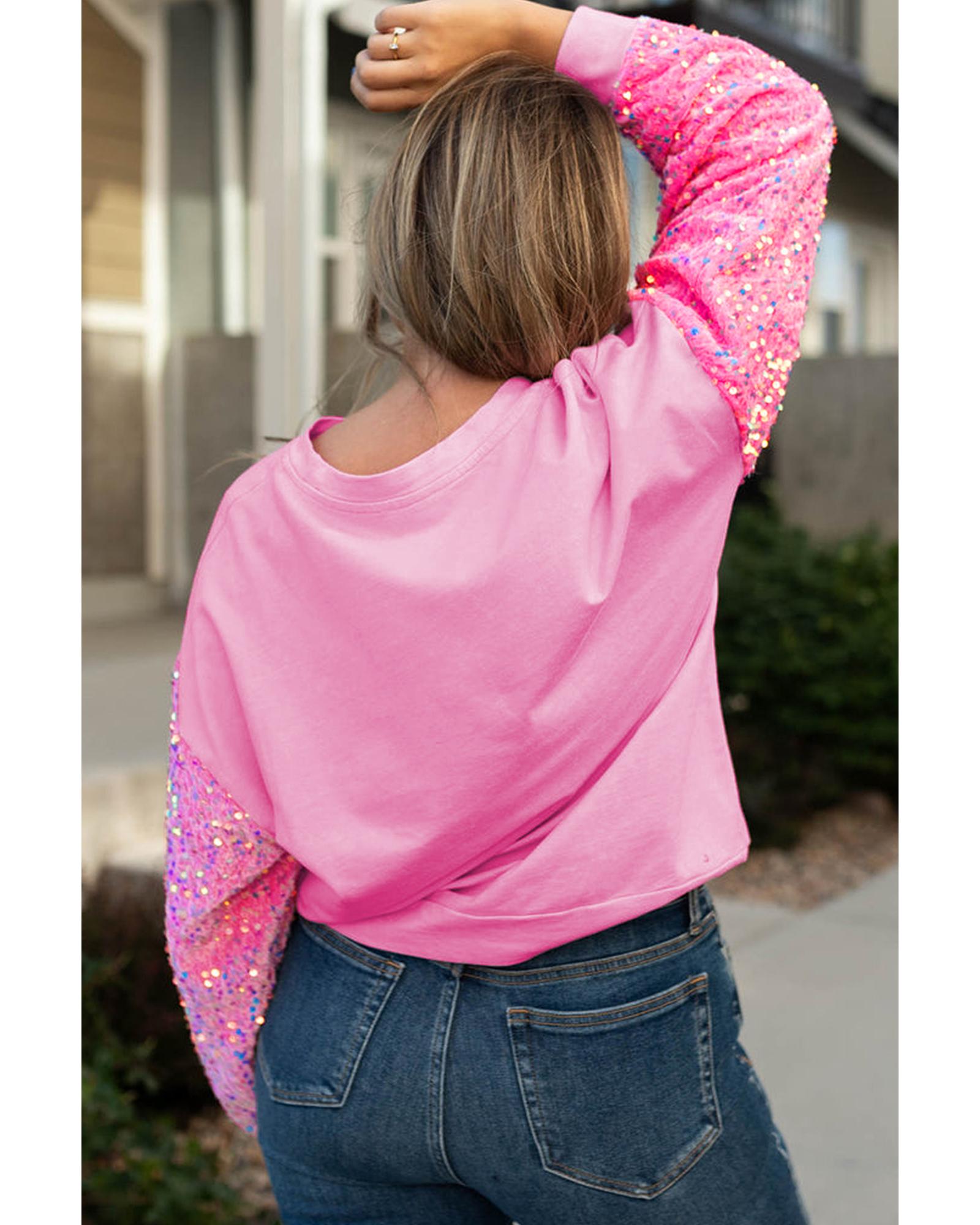 - Pink Plus Size Sequin Sleeve Drop Shoulder Sweatshirt