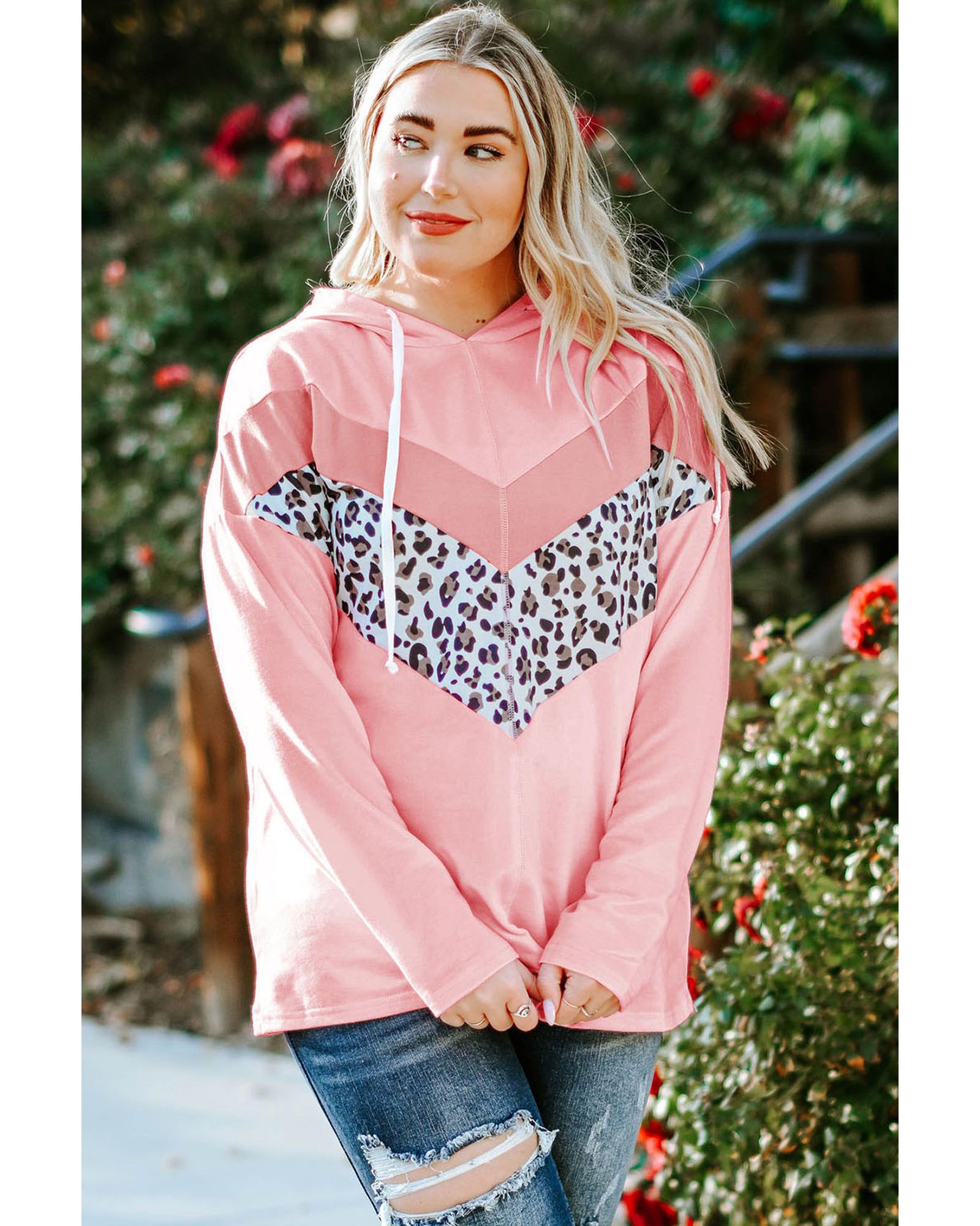 Pink Plus Size Taupe Chevron Hooded Top – 2X