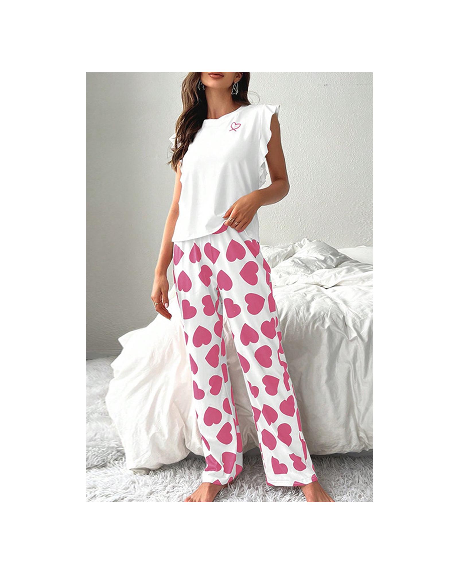 Pink Ruffled Tank Top And Heart Print Pants Lounge Set – XL