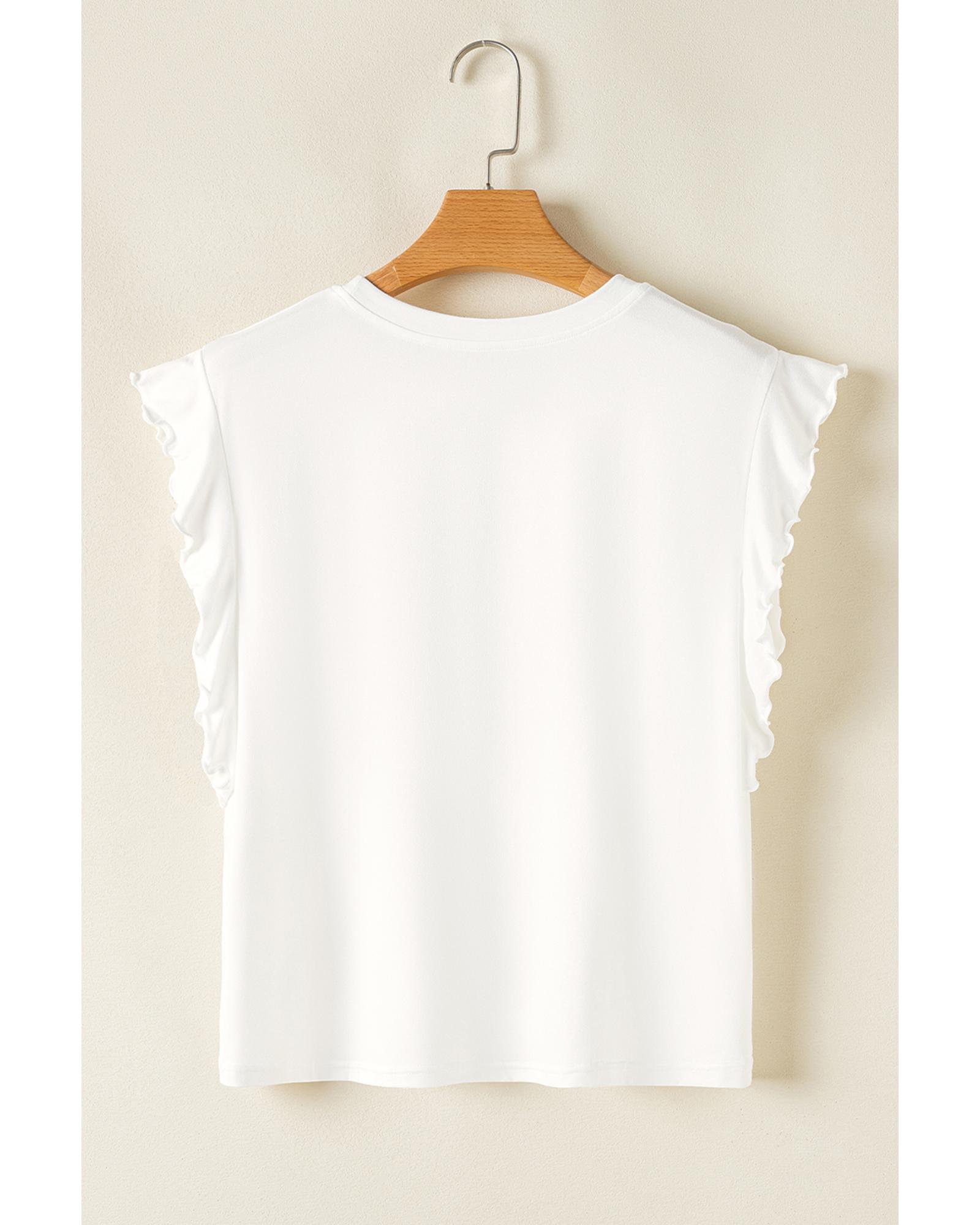 - Solid color tank top with ruffled detail